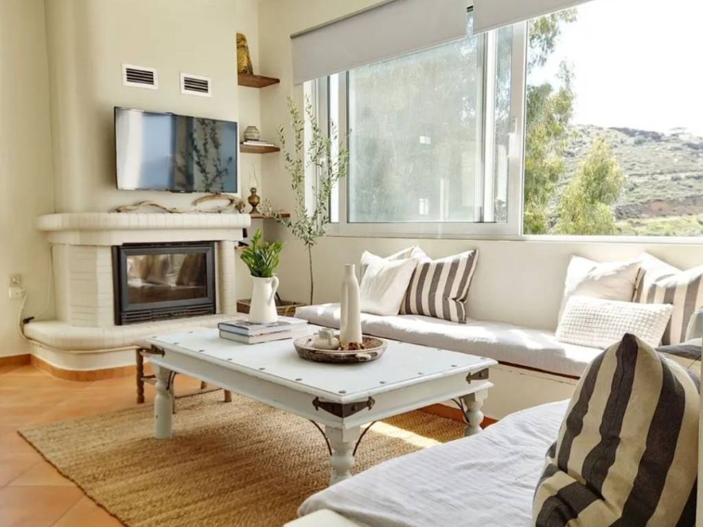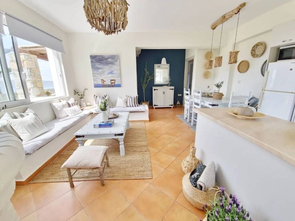 For sale: Detached house of 180 sq.m. with sea view, just 800 meters from the organized beach of Kavos and 6 kilometers from the town of Karystos. The property consists of two independent residences (ground floor and first floor) and is fully furnished and equipped with electrical appliances. Each floor includes 3 bedrooms, 2 bathrooms, and a spacious open-plan living room with kitchen and fireplace. The house is surrounded by a lush garden with flowers, olive trees, fruit trees, and a pond with fish and water lilies. There is also available space for the construction of a swimming pool. Asking price: €340,000