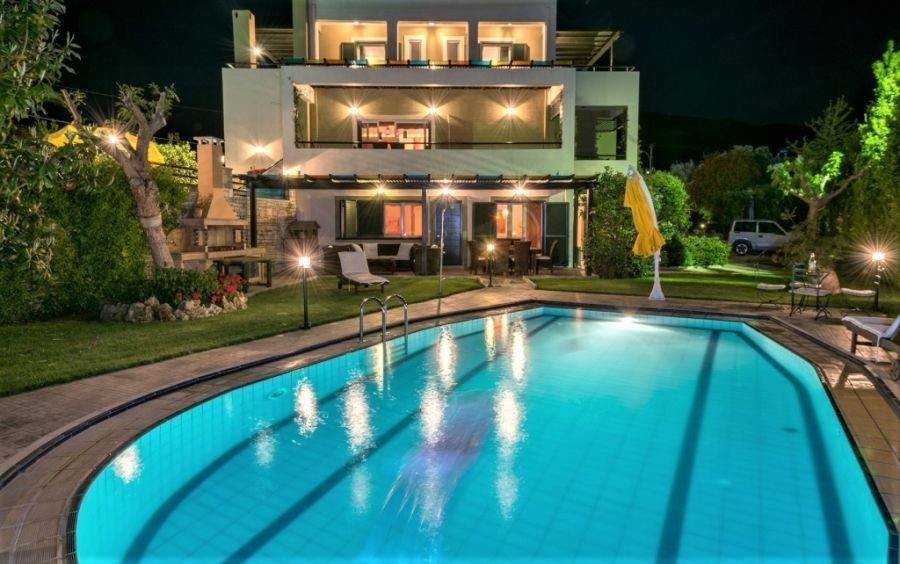 In the peaceful village of Roussospiti, just minutes from the city of Rethymno, this exceptional luxury villa captures the true essence of Cretan elegance and Mediterranean charm. Set on a private plot of 2,670 sq m, the 350 sq m villa is spread over 3 levels and boasts stunning panoramic sea and city views, offering an unparalleled sense of tranquility and elegance. Designed for comfort, privacy and outdoor living, the villa is divided into two independent residences, each with a private swimming pool. Layout & Features Main Villa: 4 beautifully decorated master bedrooms, each with private bathroom A spacious living room with fireplace and elegant dining area A fully equipped modern kitchen Large terraces with sea views Private pool, BBQ area and lush gardens Guesthouse: 2 comfortable bedrooms with en-suite bathrooms Cozy living area with fireplace and modern kitchen Private pool and outdoor living room — ideal for guests or for rental Features: 2 Private Pools - Sea & city views - Independent Guest Villa - Fully Furnished & Equipped - Autonomous Heating, Air Conditioning, Solar Water Heater, Boiler.. Two Fireplaces, BBQ, Garden with Automatic Irrigation, Private Vineyard with Wine Cellar. Security Door, Alarm System, Satellite TV, Internet Storage, Attic, 5 Parking Spaces Energy Certificate: C Suitable for Investment / Tourist Use Whether used as a private residence, a holiday home or a boutique rental property, it offers an excellent balance between privacy, nature and luxury living. Location: Roussospiti, Rethymno, Crete SPITI 4 ALL Real Estate Tel.: +30 2814 011196 | ✉️ spiti4all@gmail.com