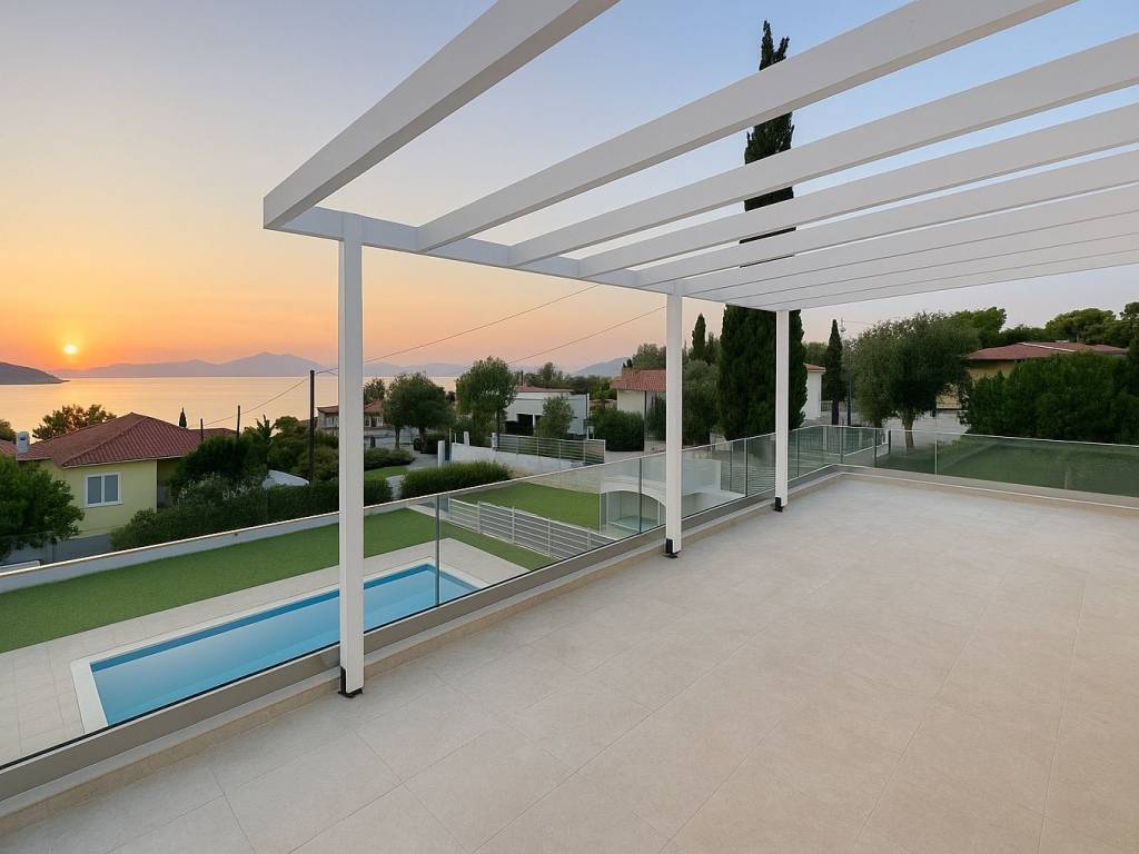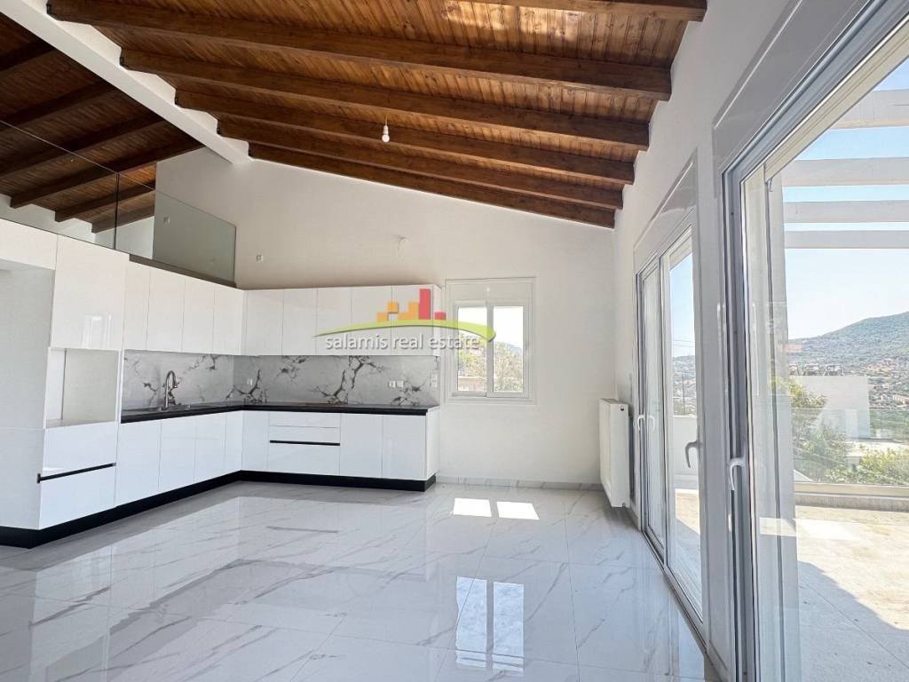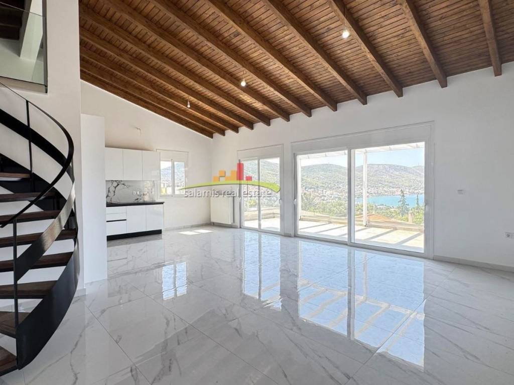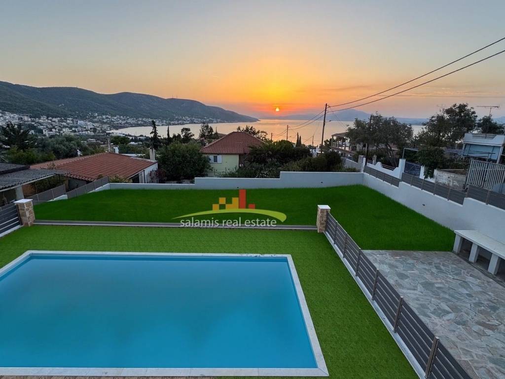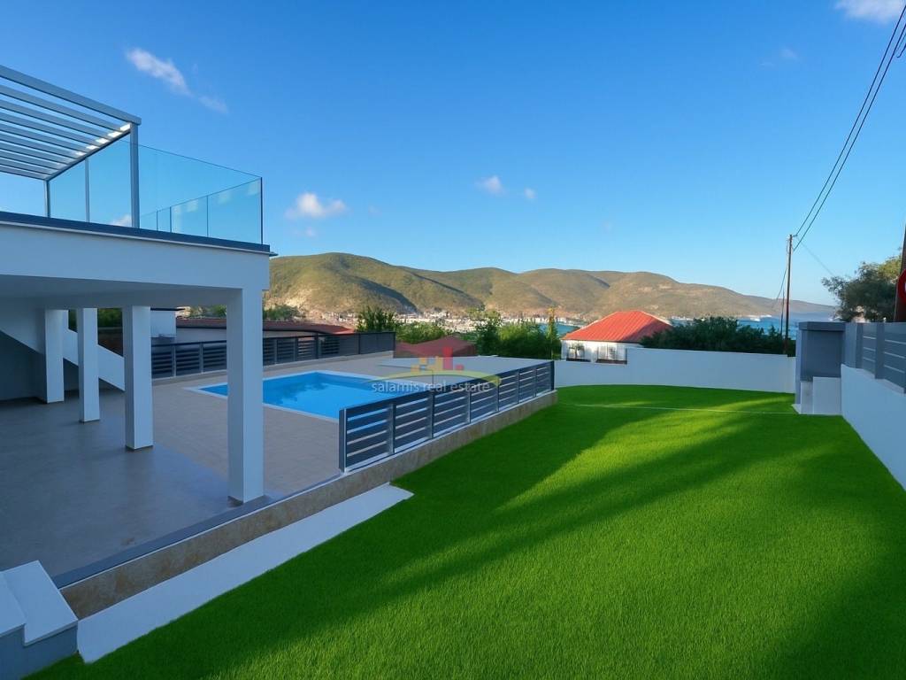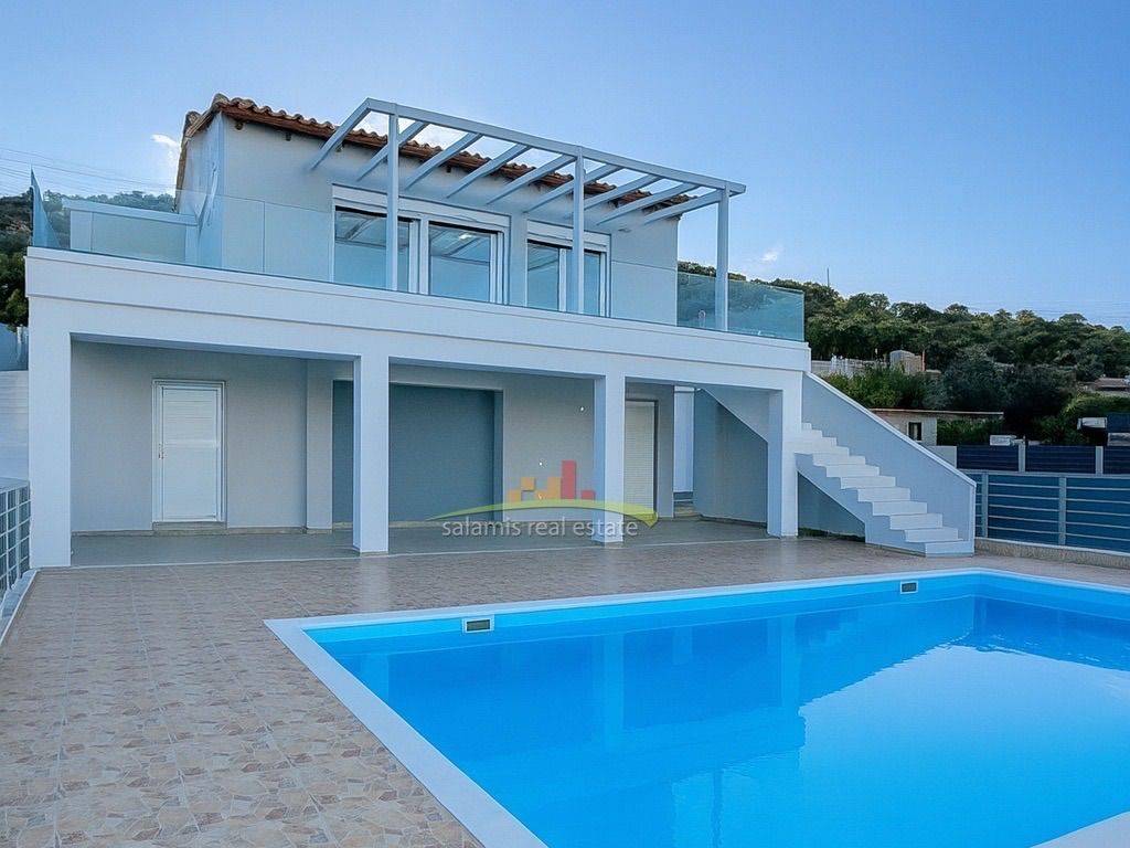 For Sale – Seaview Villa in Agios Athanasios, Aianteio, Salamina Located in the prestigious area of Agios Athanasios, Aianteio, Salamina, just a few minutes from the island’s most beautiful beaches, this brand-new, never-inhabited villa of 140 sq.m. sits on a plot of 690 sq.m. and offers elegance, comfort, and breathtaking sea views. The residence features: • 3 spacious bedrooms • 1 bathroom and 2 WC • A large open-plan kitchen and living area with wide patio doors offering unobstructed sea and sunset views • A spacious attic, ideal for multiple uses such as guest room, office, or playroom The outdoor area is beautifully landscaped and includes: • A large private swimming pool • BBQ area • Changing rooms for the pool • Boiler room • Private parking with electric garage door • Autonomous heating system Highlights • Panoramic and unobstructed sea view • Brand-new and unused construction • Excellent location, just minutes from Aianteio’s market and beaches • Beautiful landscaped surroundings An ideal property for permanent residence or holiday retreat, combining luxury, privacy, and an exceptional sea view.