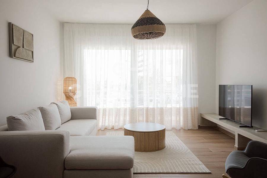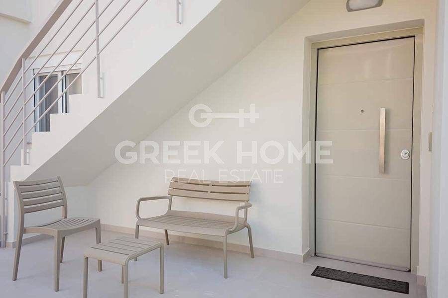 Assos - Lecheo - Apartment 75sqm plot 600sqm, fully furnished, bedrooms 2, 1st, newly built, year built 2025, energy class B, living room, kitchen, bathroom, heating type: autonomous (wood), air condition, quiet, dual aspect apartment, luminous, unobstructed view, frontage, electric roller shutters, solar heater, fireplace, balconies, built in appliances, aluminum frames, double glazed windows, door screen, ceramic tiles floors, secure door, east-southern orientation, close to sea (up to 200m).