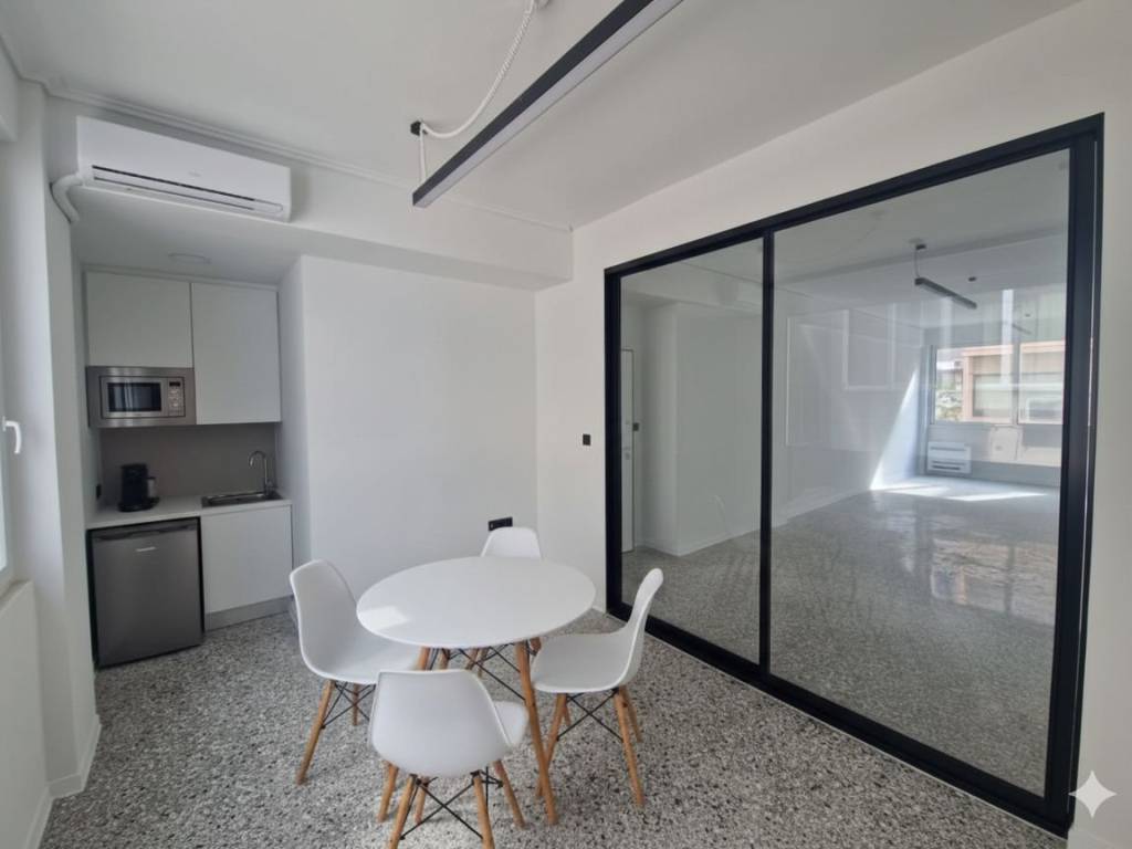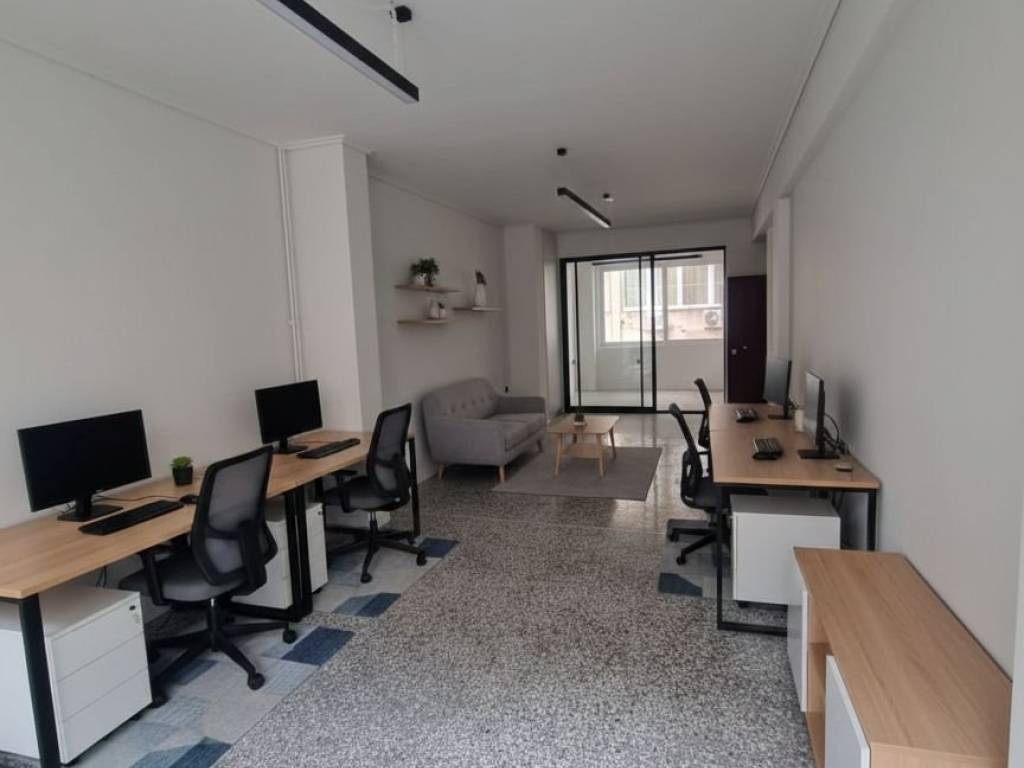 Fully renovated office, with private WC and kitchenette on Notara 94, very close to gate E9. New electrical panel, sockets, lighting, air conditioning. New bathroom - kitchen plumbing. New aluminium windows with mosquito nets. Office space partition with thin aluminum sections and triplex glass with soundproofing membrane. Fully functional space with organised parking spaces near the building. Communication via whatsapp.