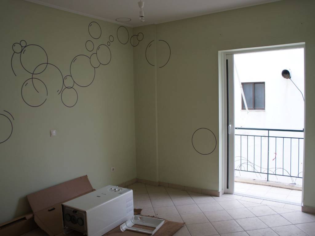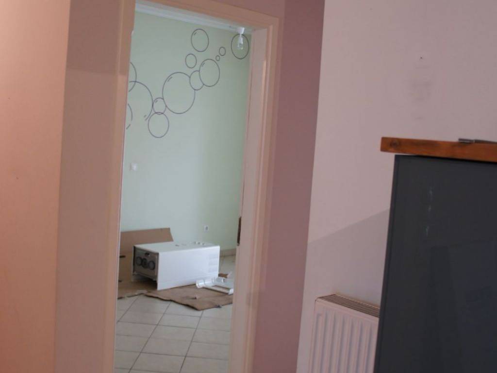 Διαμέρισμα του 2004, σε πολύ καλη κατάσταση. Έχουν γίνει όλες οι απαραίτητες συντηρίσεις (λέβητας αερίου, αλουμίνια, βάψιμο, καινούρια φώτα πάγκου κουζίνας, κρυφός φωτισμός πάνω από τα ντουλάπια της κουζίνας). Πολύ κοντά σε σημεία ενδιαφέροντος (σχολεία, μετρό, μέσα μεταφοράς, αγορά). Ένα ξύλινος πάγκος χωρίζει τη κουζίνα από τους άλλους χώρους - υπάρχει η δυνατότητα να μετακινηθεί. Από την είσοδο υπάρχει ένας μεγάλος διάδρομος, κατάλληλος για αποθηκευτικούς χώρους. Διαθέτει ένα μπαλκόνι μπροστά (στο σαλόνι) και ένα στο πίσω μέρος (ενώνει τις κρεβατοκάμαρες και το μπάνιο). Επίσης υπάρχει πατάρι, για επιπλέον αποθήκευση. Απαγορεύονται τα κατοικίδια.