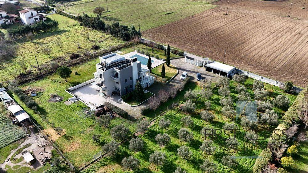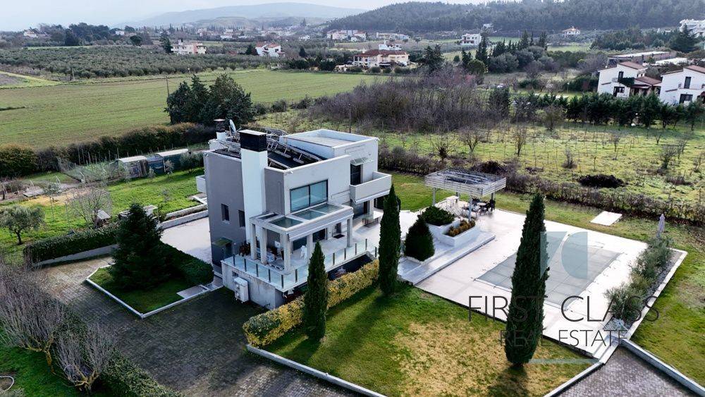 Luxury Villa for Sale – 363 sq.m. | Tagarades – Thermi, Thessaloniki Available for sale, a luxurious 363 sq.m. villa built in 2008, set on a 6,300 sq.m. private plot, located in the serene area of Tagarades – Thermi, just 9 km from Thessaloniki Airport. A property of exceptional design and quality, offering privacy, comfort, and modern energy-efficient features. Property Features: 5 Bedrooms (2 Master) 4 Bathrooms + 1 WC 2 Kitchens 2 Living rooms 6 Parking spaces (3 indoor & 3 outdoor) Internal elevator Internal staircase Heating & Energy Systems: Autonomous heat pump heating Underfloor heating with independent level control Air conditioning & full thermal insulation Photovoltaic system installed, generating an average income of €7,000 per month 25-year contract with the electricity provider Energy Class: A Construction & Materials: Aluminum window frames with triple energy glazing Floors: Marble & Tiles Premium quality construction Additional Features: Swimming pool Spacious landscaped garden with lawn & trees Storage room Security door Video intercom, alarm system, security cameras No shared maintenance fees View & Location: Unobstructed mountain and green views, in a quiet and private setting with easy access to Thermi and the airport. Photovoltaic System: The property is equipped with photovoltaic panels, generating an average income of €7,000 per month. There is a 25-year contract in place with the electricity company. Contact: First Class Real Estate Tel: +306944880762 Email: alexandros@firstclass-realestate.gr, a.n.fragkopoulos@gmail.com