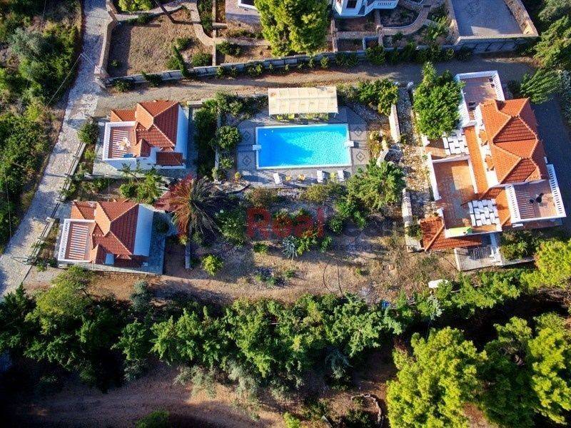 Real estate consultant Nikolaos Christopoulos. A Residential complex, with a total area of 370 sq.m., on a plot of 2.106sq.m., is exclusively available for sale in Votsi, Alonissos. It is a south-west oriented, frontage and bright building. It was built in 2000 and is in extremely good condition. It consists of four (4) two level villas with a separate entrance. On the ground floor of 46,13 sq.m., we find a living room, a kitchen, a bedroom and a bathroom. An internal staircase leads us to the attic of 46,13 sq.m., where we find a single space with a bedroom. Their floor is made of tiles and laminate and the frames are wooden, they have a boiler and two air-conditions, each. They have double glazing, screens, storage, BBQ and a pool of 17.37sq.m. The residence is southwest-facing and has big terraces with an amazing view of the blue-green waters of the island. Outside, the property is surrounded by a green garden, ideal for hosting pets. It can also function comfortably as a hotel or short-term / long-term room rental business. Access via paved road, while it also has a space for parking. It is close to the port, the beach, restaurants, the local market and supermarkets in the area. It is only 200m away from the sea, 3 km from Chora Alonissos, 1 km from the port in Patitiri and 51 km from Skiathos Airport. It is an excellent investment for its utilization as a tourist establishment. The green island of Alonissos is one of the 10 "hidden" Greek holiday destinations according to a publication of the British newspaper "Telegraph", it is a unique place that stands out for its unparalleled natural beauty. It is famous for its beautiful beaches, endless greenery, the unique marine park, the home of the seal "monachus-monachus" and for the first underwater museum in Greece, the "Parthenon of the Shipwrecks".