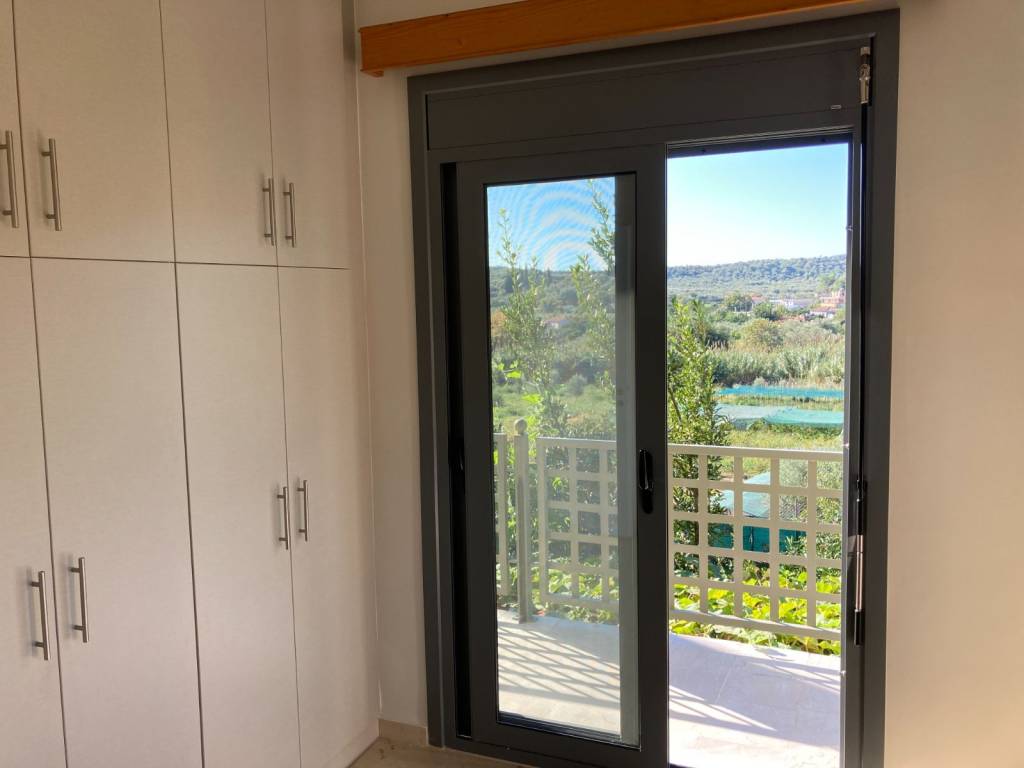 First floor apartment for rent in a two-story house, 60m2 with 2 bedrooms, living room, dining room, and kitchen in an open space, bathroom with shower. The apartment is renovated and fully furnished. It has new energy-efficient aluminum window frames with screens and shutters. The apartment also has new awnings on both sides. Veranda and balconies of approximately 40m2. It features: New kitchen with marble countertops and all built-in electrical appliances (Miele refrigerator, Siemens dishwasher, Teka stove and hob, washing machine), bathroom with shower, living room, dining room, bookcase-chest of drawers, beds and wardrobes in the bedrooms. Heating - cooling with large new air conditioning, solar water heater, large Samsung TV, sound system. Parking space in front of the entrance. The bus stop is in front of the house. Located 1,5 km from the sea, 10 km from Kalamata airport, 25 km from Kalamata (10 minutes from Kalamata via the new road) and 500 m from the new road junction Kalamata-Rizomylos-Pylos-Costa Navarino motorway. The apartment is suitable for a couple.