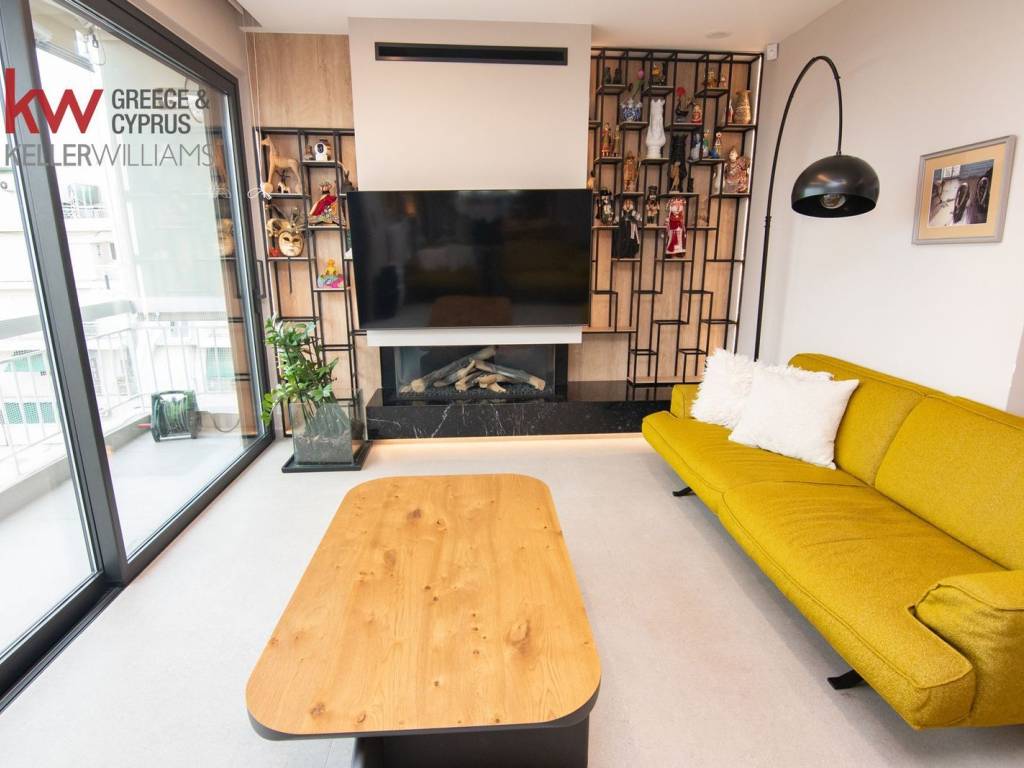 Paleo Faliro – Flisvos. Impressive apartment of 130 sq m for sale on the 7th floor, with unlimited sea views and just 300 meters from Flisvos Park. The property has been fully and luxuriously renovated in 2023, with high quality materials and a modern design that combines elegance and comfort. It is available fully furnished and equipped with branded electrical appliances. It consists of a spacious living room with a natural gas fireplace and unlimited sea views, an open dining area and a modern kitchen with an island, 3 bedrooms (one master with a walk-in closet), 1 bathroom, 1 WC and a laundry room. The heating is autonomous with natural gas, it has air conditioning in all areas, solar water heater, aluminum frames with triple glazing, security door, alarm and cable TV. Included are an 8 sq m storage room and a parking space. Located in one of the most sought-after areas of the southern suburbs, close to Flisvos Marina, restaurants and parks, 15' from Elliniko Park, 45' by car from Athens Airport. Ideal choice for those looking for a luxurious seaside apartment with high aesthetics and comfortable living. VIDEO : https://youtube.com/watch?v=_gz05nyR72c For more information: KW Solutions Group, tel.: 2130414087, email: info@solutionsgroup.gr. It is necessary for the indication of the property to present the ID card or passport of ALL those who wish to see the property, before signing (by all) the relevant Indication Order. Finally, ask our Consultant about the Renovation possibilities and the advantages that our group company, "Resolutions - Renovations" offers you. See more on our main site: https://solutionsgroup.gr/