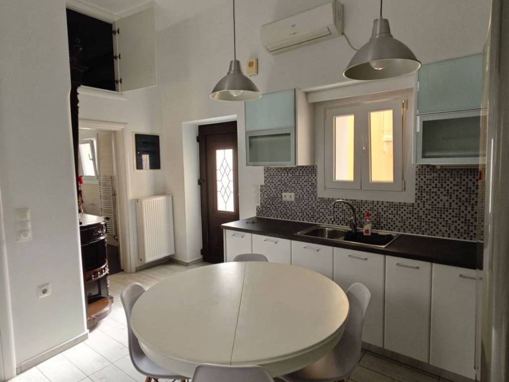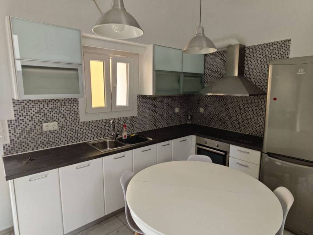 Furnished apartment of 78 sq m for rent for LONG-TERM lease in Ermoupolis. It consists of 2 bedrooms, living room - kitchen (single room), bathroom and has a huge loft. It has: independent oil heating, new air conditioners, solar - water heater. Equipped with electrical appliances (refrigerator, oven, stove, washing machine and dryer). PVC frames with glass next to them, screens. Pets are not allowed. 2-3 min from the main square. For information, call me. It is immediately available.