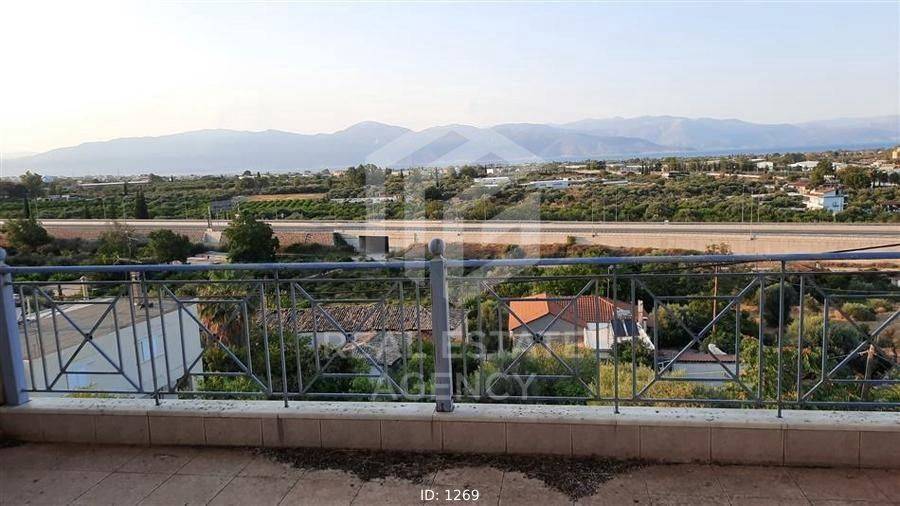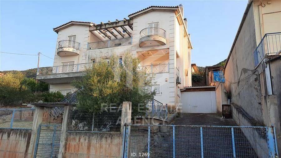 Three-storey house with a total area of 355.10 sq m, consisting of a ground floor of 146.94 sq m with living room, kitchen, bathroom, storage room & 1 bedroom, first floor of 115.07 sq m, with living room, kitchen, bathroom & 1 bedroom and second floor of 80.17 sq m, with bathroom & 3 bedrooms, on a plot of 557.60 sq m. It has an unlimited view. It is located 200 m. from the Corinth-Patras National Road & 5.4 km from the beach Code: 35345_1