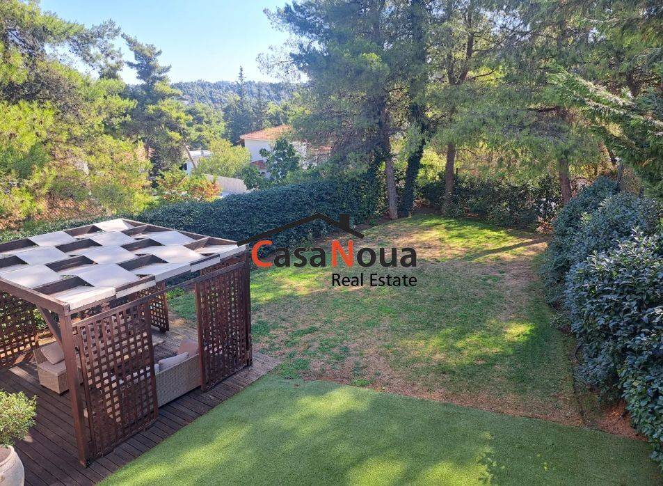 Πολυτελής μεζονέτα δίνεται προς πώληση στην όμορφη περιοχή του Διονύσου , με απεριόριστη θέα στο βουνό . Εκτείνεται σε 3 επίπεδα ( 1ος , 2ος , 3ος όροφος ) τα οποία συνδέονται με εσωτερική σκάλα και ασανσέρ. Διαθέτει 4 υπνοδωματία , εκ των οποίων το ένα είναι master με δικό του dressing room , 3 μπάνια και 1 WC, εντοιχισμένες ηλεκτρικές συσκευές στην κουζίνα , boiler, playroom σε ανεξάρτητο χώρο με δική του είσοδο , αποθήκη, σοφίτα , θυροτηλεόραση, μεγάλες βεράντες που προσδίδουν απεριόριστη θέα και ένα καλαίσθητο κήπο με πράσινο γκαζόν. Το playroom επειδή είναι υπερυψωμένο λειτουργεί και σαν ανεξάρτητο διαμέρισμα 170τ.μ. με σαλόνι , τραπεζαρία , 1 μπάνιο , 1 υπνοδωμάτιο, κουζίνα. Λόγω του μεγάλου οικοπέδου υπάρχει η δυνατότητα εγκατάστασης πισίνας .
