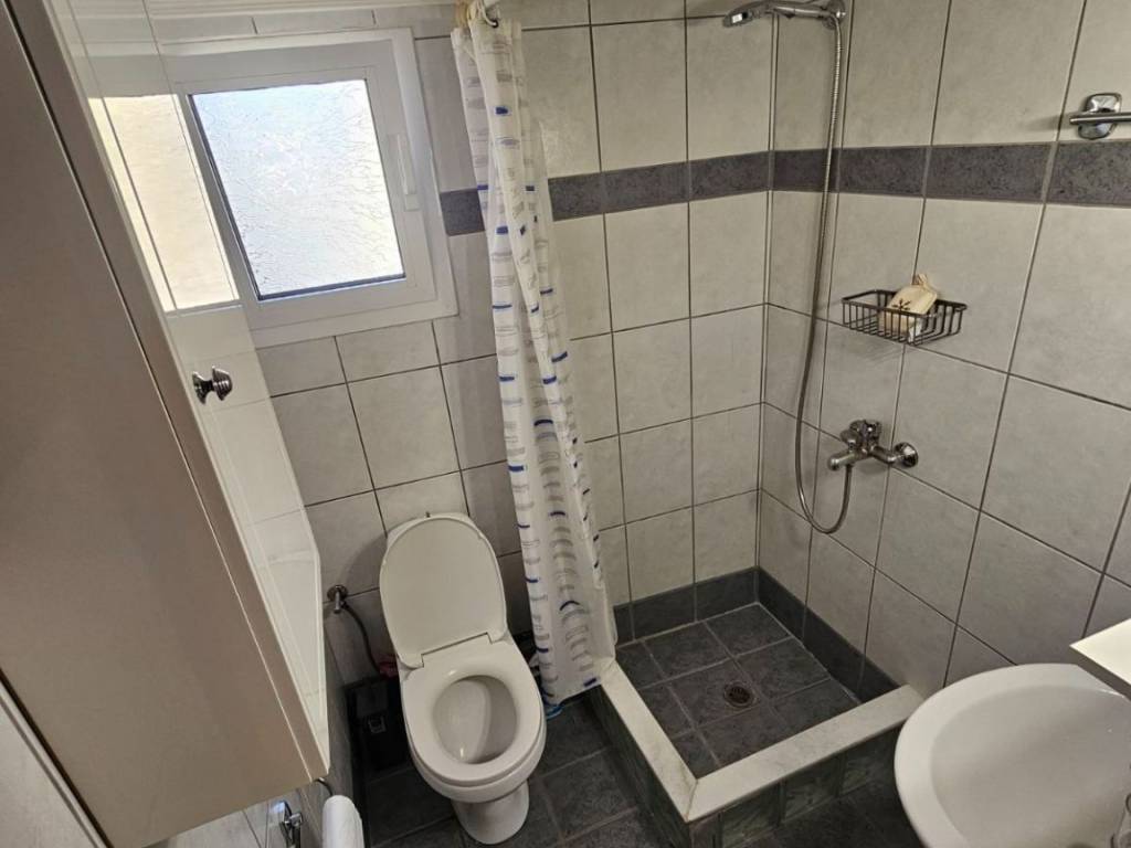 A 60 sq.m. apartment is available for rent on the first floor of a residential building, constructed around 1969–1970 and renovated in 2010. The apartment consists of a living room with dining area, a hallway, one bedroom, a kitchen, a bathroom, and a balcony. Additionally, there is a small storage room or attic of approximately 7 sq.m. located on a private rooftop terrace of 45 sq.m. It is fully equipped and includes a solar water heater, washing machine, new dishwasher, refrigerator, electric stove, microwave oven, television, and other small electrical appliances such as a fan and toaster. The kitchen is fully equipped with dishes, cutlery, and all necessary utensils, while linens and towels are also provided. It is ideal for students or a couple seeking comfort, peace, and a fully furnished and equipped home.