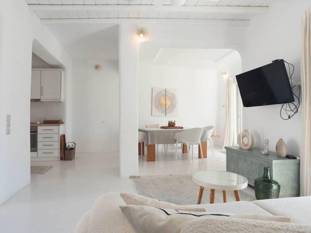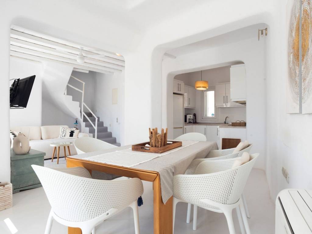 Located within the gated Elia community, this maisonette offers a combination of privacy and security along with the relaxed atmosphere of island life. The property is designed to complement the Cycladic landscape and benefits from a south-facing orientation, allowing natural light to fill the interiors and providing unobstructed views of the Aegean. The residence includes three well-sized bedrooms, while the open-plan living areas flow seamlessly to the outdoor spaces. Its design blends traditional forms with modern details, creating a clean and timeless aesthetic. Outside, a private swimming pool, sunlit terrace, and shaded pergola expand the living area, offering space for relaxation or dining. The gated community provides controlled access and a secure environment, and the property is within close reach of Elia beach. Mykonos Town, with its restaurants, shops, and cultural offerings, is a short drive away. This maisonette represents a thoughtfully designed home in a sought-after area of Mykonos, suitable for private living or seasonal rental. Location: Mykonos is an island located in South Aegean and is part of Cyclades Islands. The island is one of the most developed tourist destinations in the world and is distinguished for its intense and lively nightlife. Unique Features: Mykonos is a cosmopolitan and glamorous island attracting a large number of Greek and foreign Celebrities who choose the island for their summer holidays. At the same time, characteristic features of Mykonos are its picturesque beauty that anyone can enjoy by walking in its alleys, its wonderful beaches, its luxurious hotels and restaurants. What makes it so special is the fact that it satisfies all requirements, offering visitors who love nightlife a multitude of bar options but on the other hand every visitor can discover the rich history of the island, sightseeing and archaeological sites. Accessibility: Mykonos is accessible from the port of Rafina and Piraeus, ferries depart several times a day and during the summer season at least three ferries depart in the morning and one or two in the winter. Also, Mykonos can be reached by plane as the island has an Airport with several flights operating mainly during the summer period when demand is high. Investment Opportunity: Buying property in Mykonos is a huge investment with a continuous and growing investment interest as it attracts tourists and investors from all over the world.