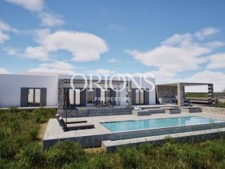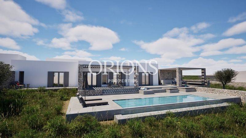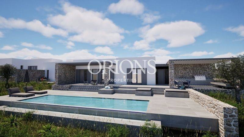 Above the sea of Aliki, in the quiet hills of Maggano, this newly built villa captures the calm rhythm of southern Paros. The view opens wide to the Aegean and the nearby islands, and every evening the sunset fills the sky with color.Built on one level, the 130 sq.m. house sits on a 1,000 sq.m. plot. The entrance leads into an open living room and kitchen facing the pool and the sea. Two master bedrooms, each with en suite bathroom, open directly to the terrace, while a guest WC completes the layout.Outside, the private garden and pool create a sense of space and quiet. You can picture long dinners under the stars, or a glass of wine at sunset from your own terrace.The villa is one of two independent homes, each with full privacy and its own land. Just a short drive from the family-friendly village of Aliki, its tavernas, and beaches, this is a place made for slow days, sea views, and the simple joy of island life.