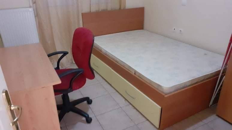 ground floor studio apartment 45 sqm, consists of a living-room kitchen, a bedroom and a bathroom. it is furnished and has air conditioning for heating.