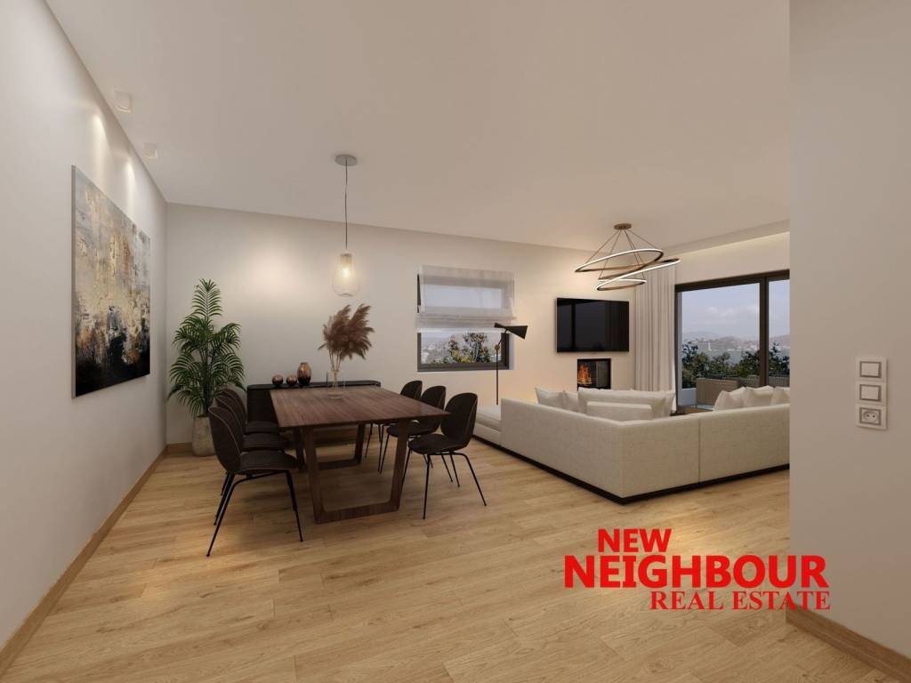 For sale under construction apartment of 115 sq.m. in Ano Melissia, 2nd floor, available Fall of '26. It has a spacious living room with open kitchen, 3 bedrooms and 2 bathrooms. It has underfloor heating with heat pump, air conditioning, electric water heater, energy-efficient windows with thermal break, alarm, energy-efficient fireplace while the entire building is surrounded by a thermal facade and is of energy class A +. It also has a parking space and a storage room in the basement. It is a house with an exemplary layout, very high quality construction. It is located in a very quiet neighborhood close to the market of both Melissia and Nea Penteli. Price 590,000 euros. NEW NEIGHBOUR REAL ESTATE AGENCY, contact phone: 2167005657, email: info@newneighbour.gr, website: www.newneighbour.gr