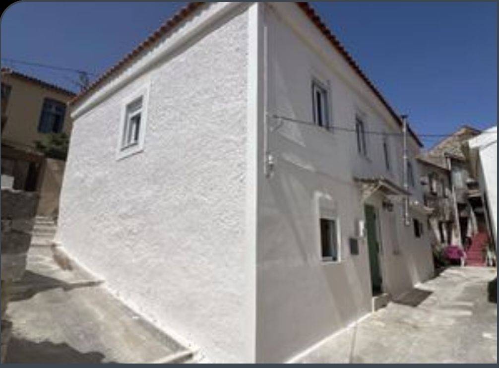 FOR SALE: Stone-built neoclassical two-story house of 140 sq.m. in the village of Mytilinioi. The property is located next to the traditional square of Mytilinioi, the largest village in the central part of the island of Samos, offering visitors all amenities such as mini markets, bakeries, restaurants, pharmacies, museums, etc. It is only a few kilometers away from the island’s capital, as well as from the famous seaside village of Pythagoreio and the well-known beaches of Potokaki and Ireon. The island’s airport is 6 km away, and the port is 10 km away. The house’s architecture reflects the style of the large village homes of the island from the early 20th century. During its recent renovation—after which it has not been inhabited—it was fitted with a new insulated tiled roof, new energy-efficient window frames, a brand-new bathroom and sanitary ware, and freshly painted interior and exterior walls. The renovation also included new plumbing and electrical installations with a modern electrical panel. The property is equipped with kitchen furniture, a range hood, refrigerator, microwave oven, and partial furnishing. The ground floor has mosaic flooring, while the upper floor features restored and painted wooden floors. The two levels are connected by an internal wooden staircase, also painted. Ready to accommodate a family.