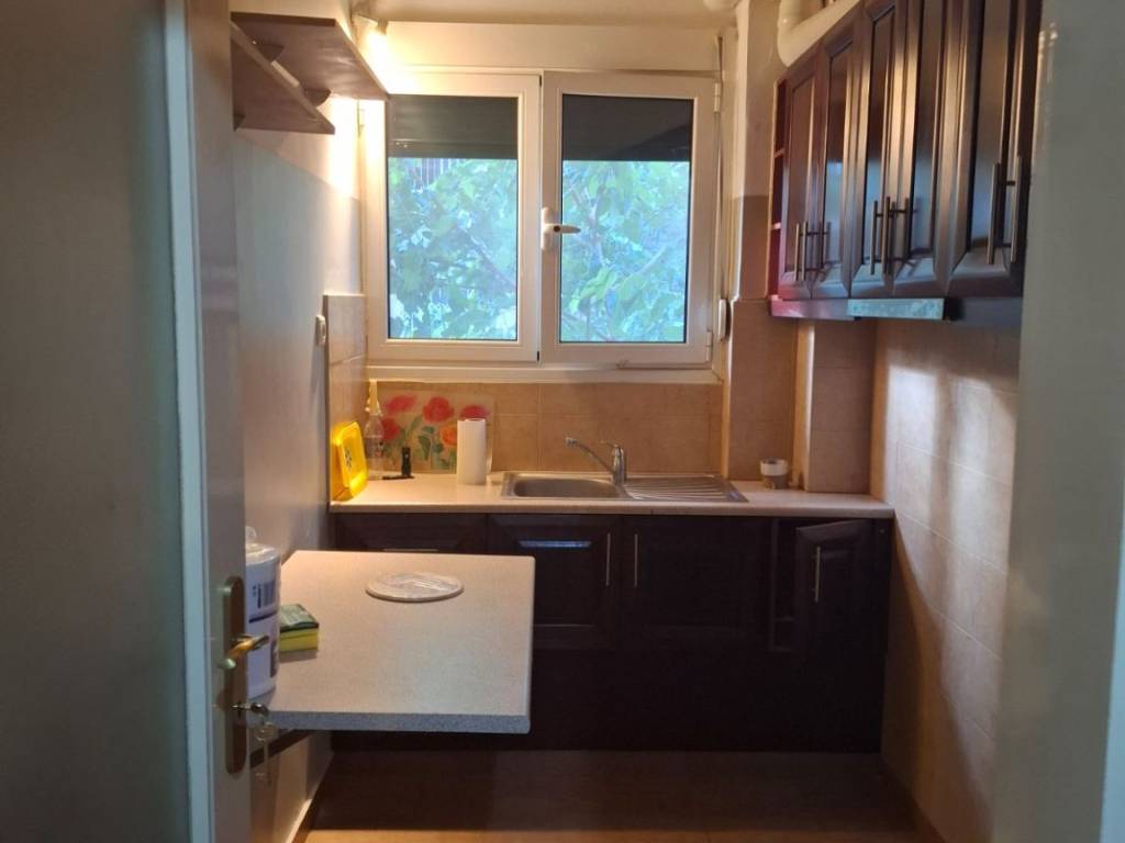 Studio apartment, fully renovated, raised ground floor, garage,with balcony, loft, entrance area for a small living room, bedroom, bathroom, kitchen, aluminum frames, air conditioning, security door, and alarm.