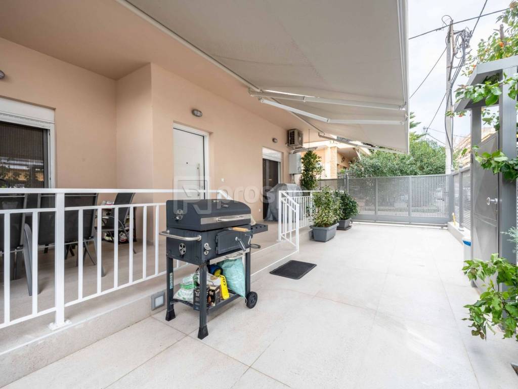 Located in an excellent area, just 800 meters from the sea and an 8-minute walk from the train station, this ground floor apartment of 117 sq.m. is available for sale. The property consists of 2 spacious bedrooms, 2 bathrooms, 2 parking spaces, and a 7 sq.m. storage room. It was fully renovated in 2025, featuring modern design and high-quality materials. It is equipped with perimeter security cameras, an alarm system, and two security doors. The apartment is bright and airy (dual aspect), and it offers the option to be easily divided into two separate apartments, as the necessary kitchen and power connections already exist. An excellent choice for residence or investment. https://marketplace.theprosperty.com/listings/14499 ☎️ 210 6812500.