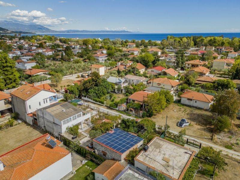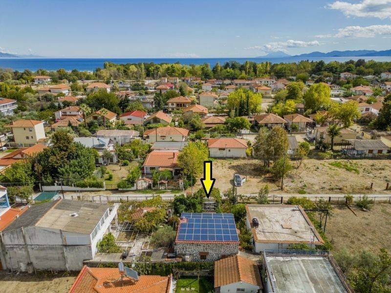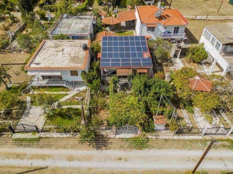Detached house 56,2 sq.m on a plot of 209 sq.m in Asprovalta, Thessaloniki. It consists of an open plan living room with kitchen and fireplace, two bedrooms and a bathroom. It is partially renovated and has tiles and new kitchen furniture and interior doors. The windows are of old type. The exterior surroundings are dominated by greenery and there is a barbecue and two storage rooms, one of which has been converted into a shower. In addition, it has photovoltaic panels on the roof which offer a guaranteed annual return. The house is 680 meters away from the sea and is southwest oriented. Asprovalta is located on the coast of the Strymonikos Gulf, east of Thessaloniki and is of particular tourist interest during the summer months. For the property inspection is necessary the identity card presentation.