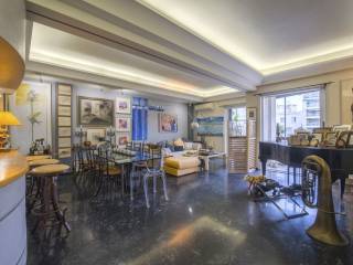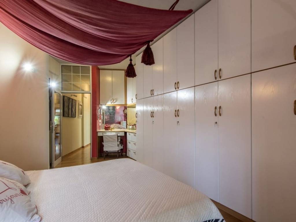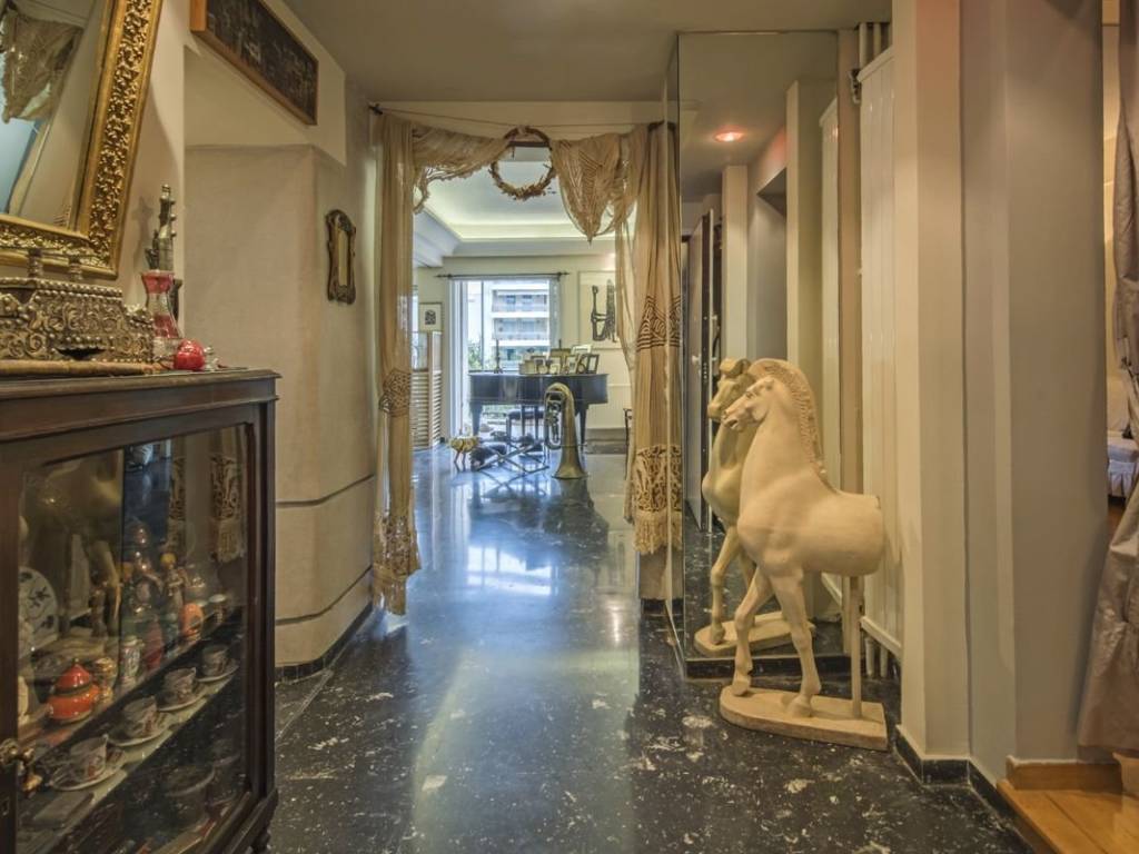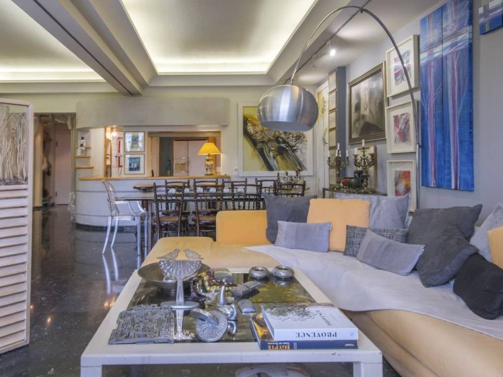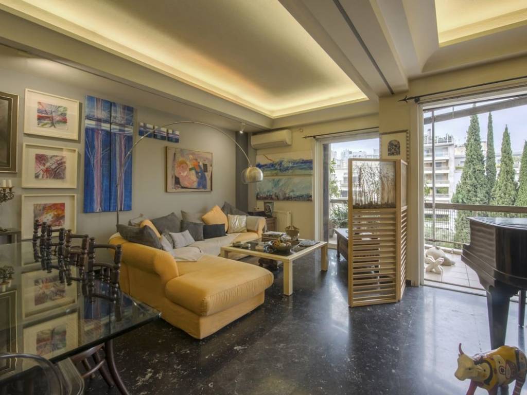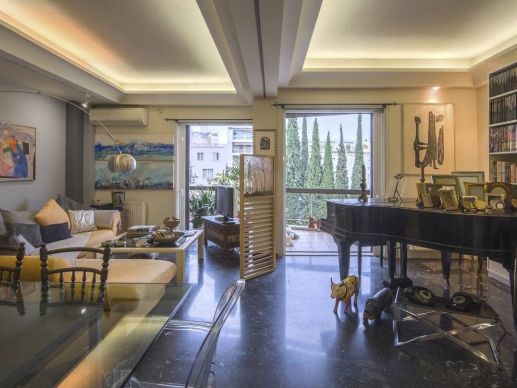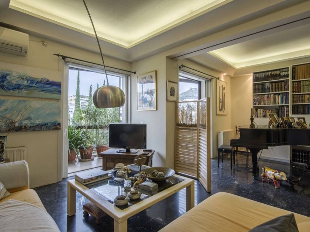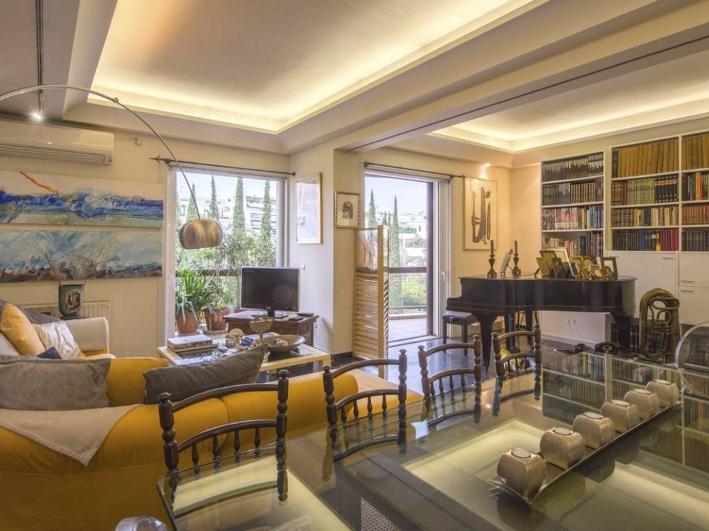 Engel & Volkers presents a unique furnished property of 129 sq.m. with unexpected views. Located on the 4th floor of one of the most distinctive apartment buildings in the area, it features furniture and décor of unparalleled aesthetics and value, is bright and airy, and is equipped down to the last detail. The layout consists of a very large reception area that visually connects to the kitchen and a tailor-made bar that complements the luxury of the reception areas, 2 particularly spacious bedrooms, a WC, and a bathroom with a hot tub. The property has ample storage space, while the balconies on both sides complement the impeccable layout of the property with wonderful views of Lycabettus Hill and the Athens Conservatory on one side and a legendary square in Pagrati on the other. It has 3 AC units, natural gas central heating, aluminum window frames with double glazing, awnings and security door. This is a turnkey one-of-a-kind property for people who love high aesthetics and want to live in the center of Athens! The property is located in one of the most popular and "classic" areas of downtown Athens. A few streets below Kolonaki, very close to the Athens Conservatory and the National Research Foundation, within walking distance of important museums and sights such as the Byzantine Museum, the National Gallery and Kallimarmaro Stadium) while it is also one of the highest quality entertainment destinations in the city as some of the best restaurants and most popular bars are located here. There is also direct access to all public transportation (bus lines, trolley lines and metro station Evangelismos) and private parking stations.