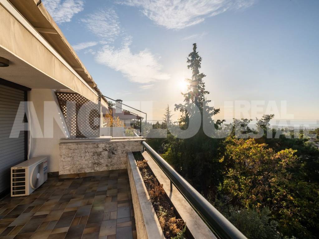 Beautiful 170 sq.m. maisonette with stunning view. In one of the most privileged areas of Panorama, an exceptional 170 sq.m. maisonette is available for sale, offering an unobstructed view of the city and the Thermaikos Gulf. The residence is developed over three levels and combines functionality, comfort, and elegant design: Ground Floor: Spacious living room with fireplace and a practical laundry room. First Floor: Bright living area with an open-plan, fully equipped kitchen and a bathroom. Second Floor: Master bedroom with walk-in closet and en suite bathroom, two additional spacious bedrooms with lofts, and a bathroom with shower. The maisonette is airy, exceptionally bright, with large balconies and offers a unique panoramic view. ANGELOU REAL ESTATE Tel.: +302310263215, +302310263775 Mob.: +306945385155 www.angelou-realestate.gr email: info@angelou-realestate.gr Mitropoleos 46-48, Thessaloniki, 54623, Greece