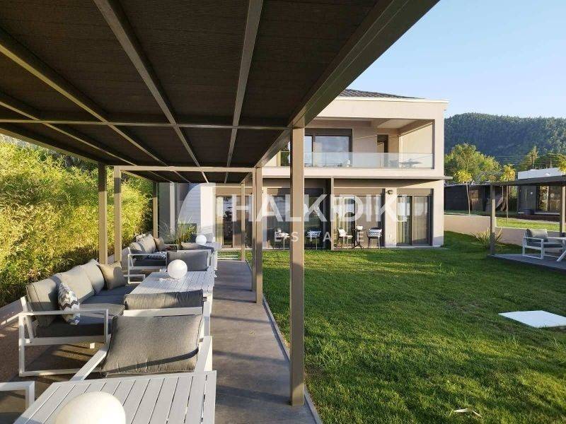 On the idyllic coastline of Vourvourou, where the waves gently kiss the shore just steps from your door, a newly built, fully furnished villa awaits — a property that blends elegant simplicity with beachfront living at its finest. Only a few meters from the sand, this exquisite 189 sq.m. residence offers the ultimate summer experience. It features five bright bedrooms, five modern bathrooms, and an open-concept kitchen-living area, perfect for hosting, relaxing, and enjoying quality time with loved ones. Breathtaking sea views dominate every corner of the villa, offering a sense of calm and luxury. Floor-to-ceiling openings invite natural light and the sea breeze into every room, while the architectural design enhances space, flow, and connection to nature. Built to high modern standards, it features aluminum frames, double-glazed windows, mosquito screens, stylish tile floors, a reinforced security door, built-in wardrobes, A/C units, electrical appliances, and a BBQ area nestled in the beautifully landscaped garden. The property also includes a private parking space and offers an unparalleled sense of openness and light. Its rare beachfront location makes it ideal both as a luxury personal retreat and a high-value investment opportunity. A true gem right on the water, for those who seek an elegant, tranquil, and fully seaside lifestyle. Price: €2,280,000