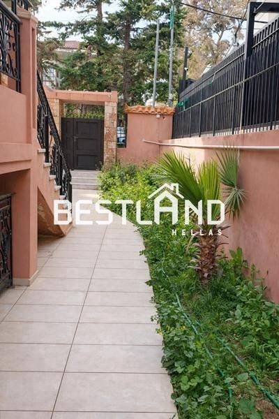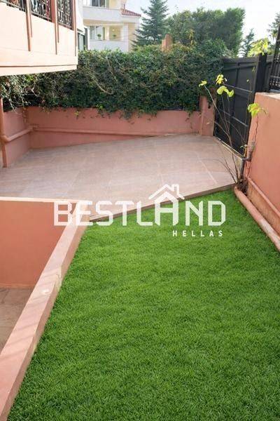 Kifissia, Politia - Apartment 94sqm plot 700sqm, partially furnished, bedrooms 2, levels 2, semi-basement - ground floor, very good condition, year built 1995, energy class D, living room, hall, kitchen, bathroom, heating type: no heating (oil), air condition, parking open space, quiet, dual aspect apartment, luminous, corner, unobstructed view, frontage, internal plot, electric roller shutters, storage space 5sqm, boiler, balconies, large balconies, elevator, aluminum frames, double glazed windows, door screen, ceramic tiles floors, three phase electricity, video doorbell, private pool, barbeque, pets allowed, within city plan, residential zone, eastern orientation, access from asphalt, price is negotiable, special offer.
