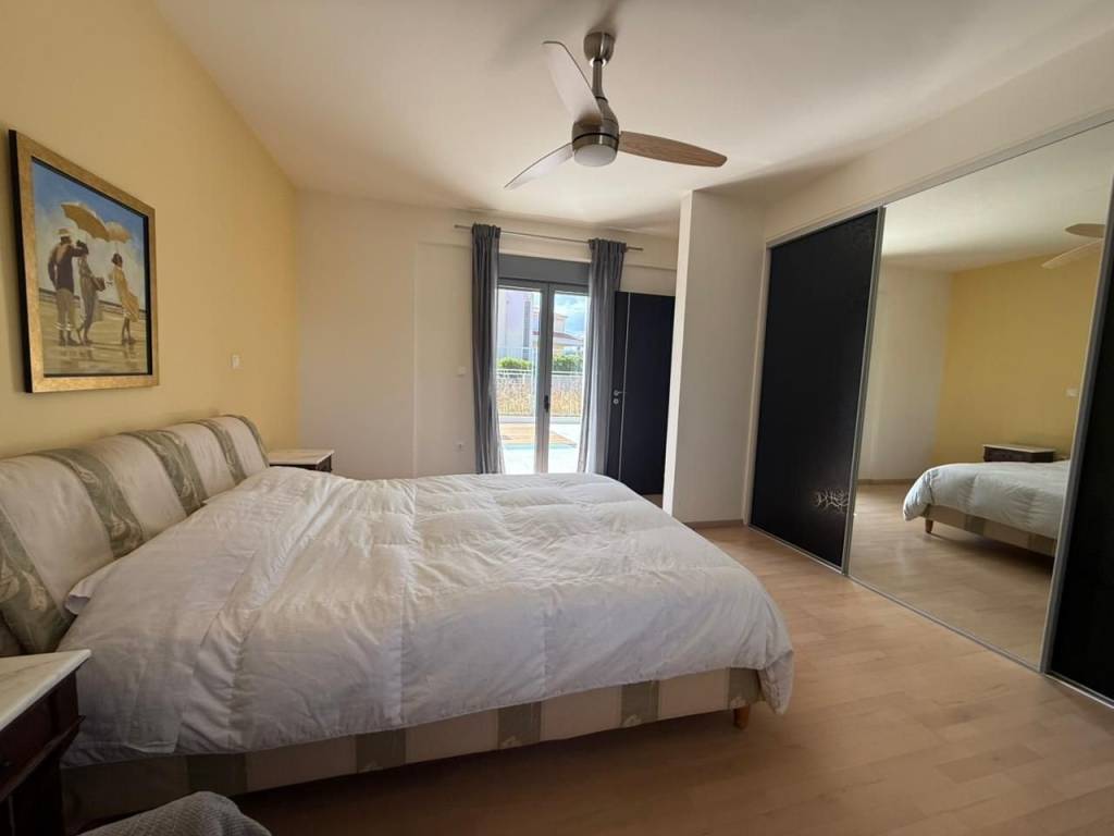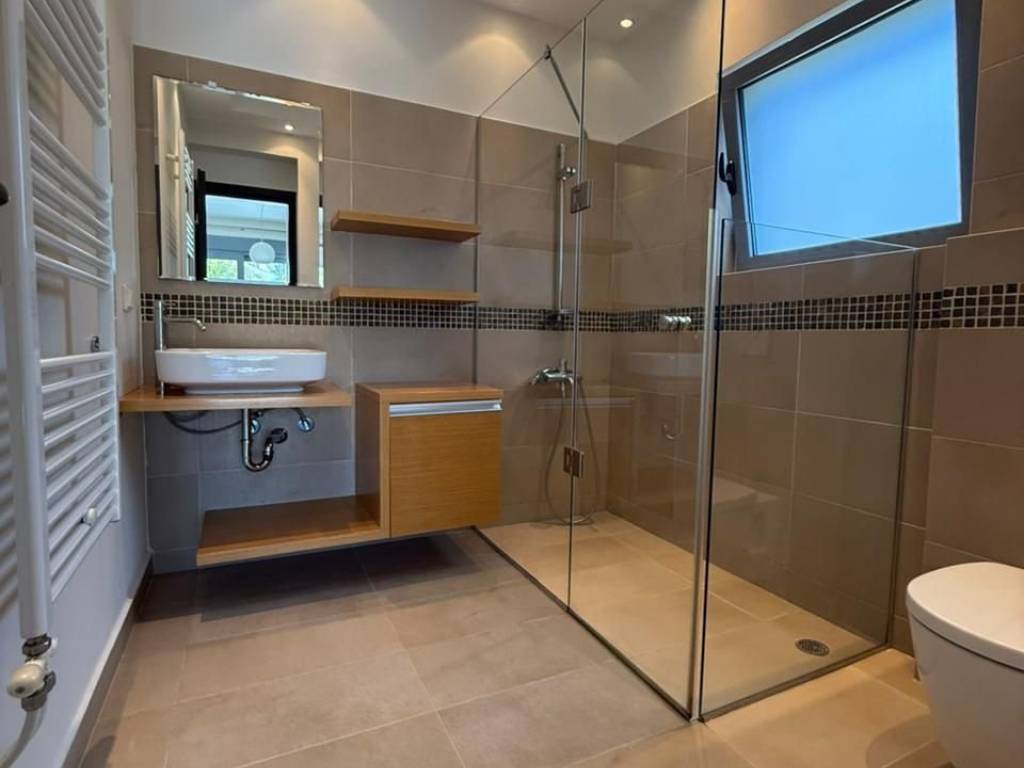 For sale, modern detached house in a quiet area of Panorama Pallinis, with a total area of 285 sq.m., on a plot of 368 sq.m. The ground floor features a spacious open-plan living and dining area with an energy-efficient fireplace and kitchen, as well as large east-facing patio doors that open onto the 250 sq.m. tree-filled garden. On the same level, there is a guest WC and a storage area. On the same level, there is a guest WC and a storage area. On the first floor, there is a large bedroom, a second room currently used as an office (which can easily be converted into a bedroom), and a comfortable bathroom. The second floor includes two spacious bedrooms that share one bathroom. The third level hosts one more bedroom and a bathroom. The large balcony on this floor offers unobstructed panoramic views and provides opportunities for customization according to your personal taste and needs. The property also features oil heating, elevator infrastructure (the cabin installation is pending), double security glazing, a security door, alarm system, air conditioning, and one parking space. An ideal single-family home, located close to private and international schools of all levels, sports facilities, and shopping centers, with easy access to Marathon Avenue and the Attiki Odos. Pallini is located 15Km Northeast of Athens city center. Even though the "official" population is 16.679, the actual one is estimated at 25.000-30.000 inhabitants. Pallini’s city center is located around Marathonos Avenue, with the Church of the Assumption of the Virgin Mary as its central point. To the north of the church is the central square with the Church of Agios Tryfonos and the Dovecote (Peristeronas) to the south inside the central city park (Eleftherias Square) where the old City Hall was located. The residential core of Pallini is located in Harvati, a settlement that developed on the marathon route, near the stream that descends from Mount Penteli. In the southeastern part of the city, the district of Leontari developed around the hill of Kantza and expanded around it, incorporating the neighborhood of Agios Nikolaos. New settlements are gradually built in the eastern part of the city towards Pikermi on the relief of Pentelic hills, such as Nea Pallini and Panorama Two hills delimit the western entrance of the city, the forested Levidis hill and the hill at the southern slopes of Penteliko, mostly occupied by the Edison Hill residential complex. Pallini is connected with Gerakas and the center of Athens to the west and with Pikermi and Rafina to the east, through the historic Marathon Route between Marathon and Athens, Marathonos Avenue. Via Attiki Odos, it is connected with the northern suburbs to the west and Mesogia and the Airport to the southeast. Attiki Odos, through Ymittos ring, also provides access to the suburbs around Ymittos and the south suburbs. In close proximity to several international and private schools and easy access to McArthur Glen and Smart park shopping Malls that are 6km away (10min). A 15min drive brings you to Athens International Airport El.Venizelos (19km, with toll) and through Rafina Port 14km (20min) you have easy access to Cyclades Islands.