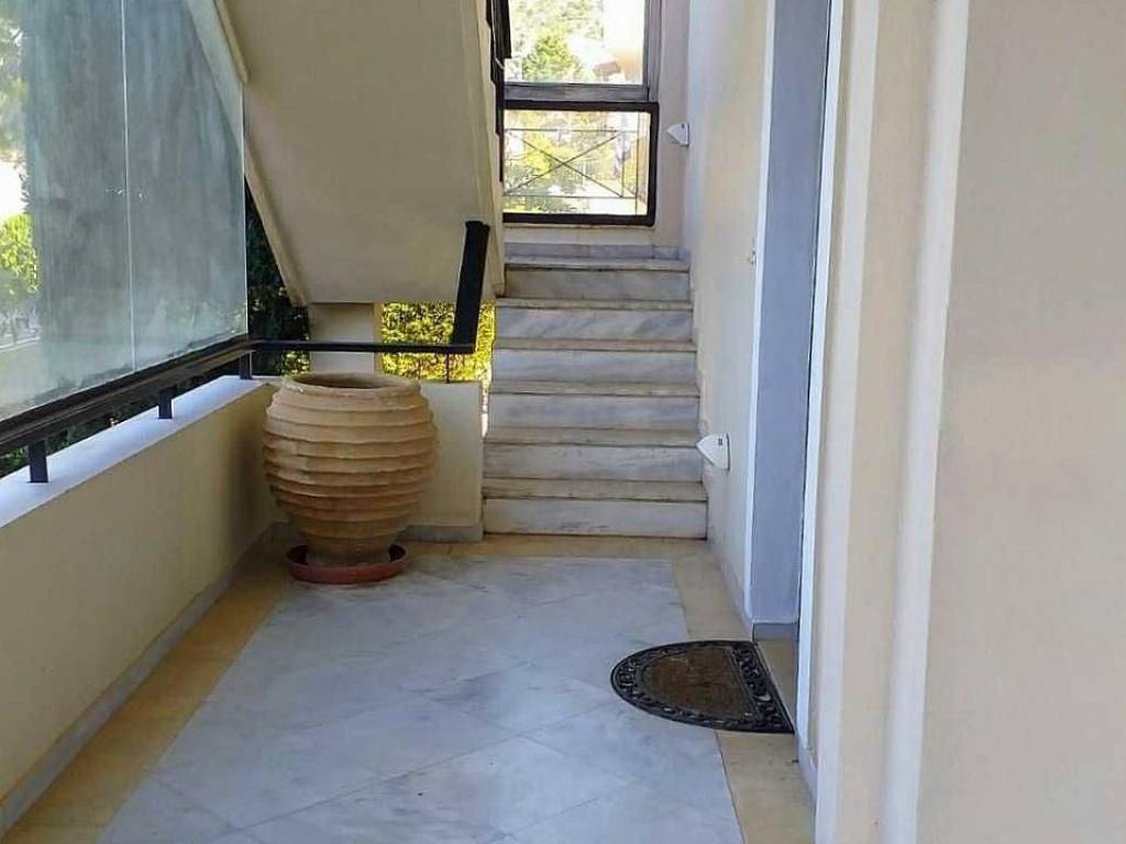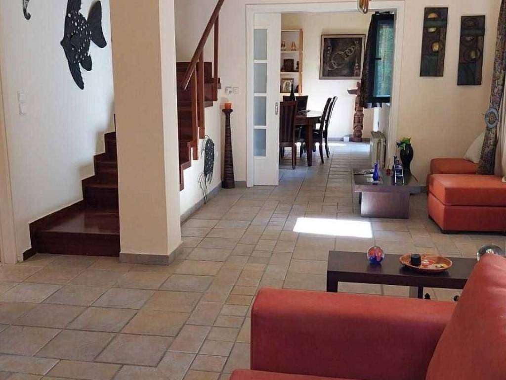Located in the sought-after and peaceful area of Korbi, this elegant three-level corner residence of 310 sq.m. sits on a 485 sq.m. plot and is in excellent condition. The property consists of two independent maisonettes, offering flexibility for family living or investment purposes. The first maisonette (130 sq.m.) spans the ground and mezzanine levels and features a spacious living and dining area with a fireplace, and a fully equipped Miele kitchen. Large patio doors open onto the lush garden, while the two bedrooms include wooden floors, built-in wardrobes, and balcony doors with insect screens. The second maisonette (160 sq.m.) extends over two floors with independent entrances and two security doors. The master bedroom includes a fireplace, oak flooring, three wall-to-wall wardrobes, air conditioning, and an ensuite bathroom with a circular jacuzzi. The large front verandas feature semi-outdoor covered areas with glass panels, floor lighting, and white marble floors. The landscaped garden is beautifully designed, with automatic irrigation, lighting, decorative plants, and a rock garden. The property is bright, airy, and corner, featuring Energy Class B, autonomous oil heating, and four parking spaces. It also includes five bedrooms (two master), four bathrooms, a storage room, alarm system, double glazing, insect screens, air conditioning, boiler, and security doors. An ideal home for families or investors, located close to parks, schools, and the crystal-clear beaches of Varkiza. Property ID: 20585, www.maison-estate.gr