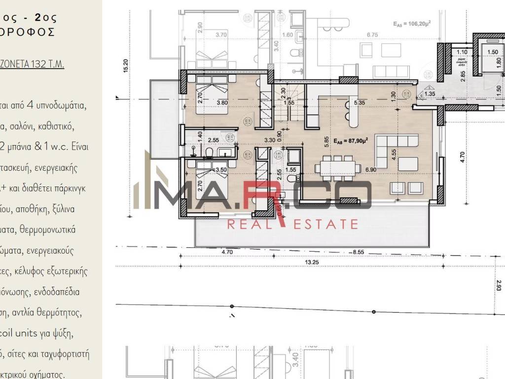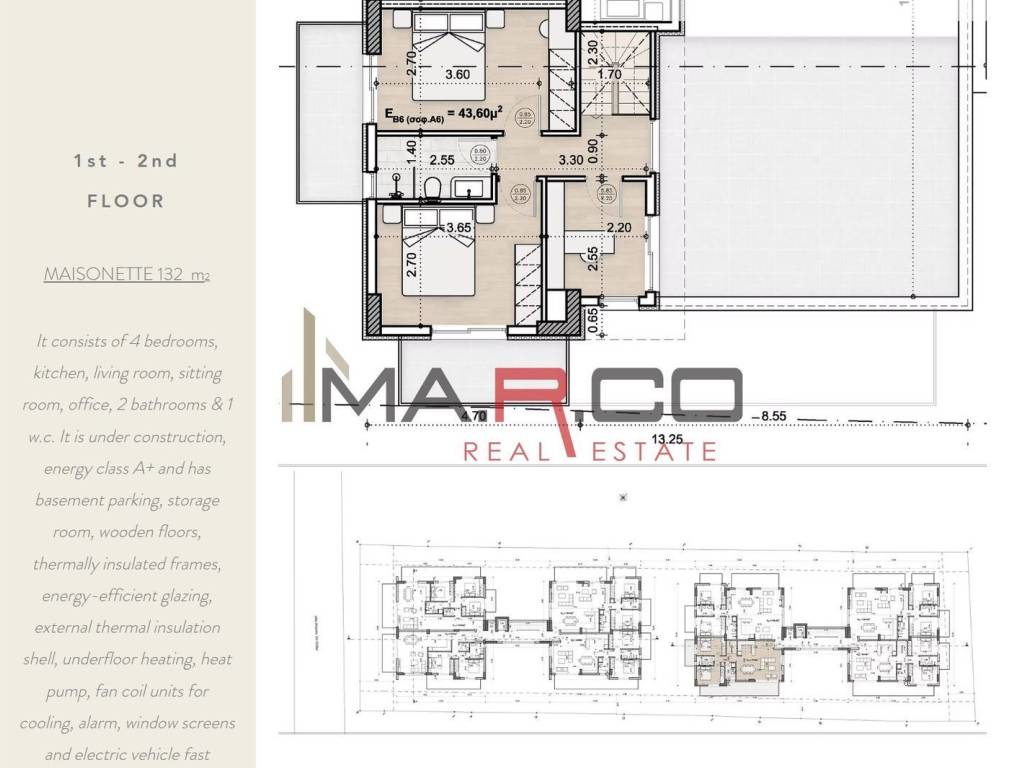 Maisonette For sale, floor: Ground floor, in Vrilissia. The Maisonette is 146 sq.m.. It consists of: 3 bedrooms, 2 bathrooms and it also has 1 parkings (1 Underground). The property was built in 2025. Its heating is Personal with Heat pump, Underfloor heating, Air conditioning, Solar water system, Thermal insulation are also available, it has Alluminum, Thermal brake frames with Double glazed - Energy Efficient windows, the energy certificate is: A+ and its floors are Wooden, Internal staircase, Security door. Price: €460.000. MA.R.CO REALESTATE & CONSTRUCTION, contact phone: 6944855335, 2109650870, email: info@marco-realestate.gr, website: