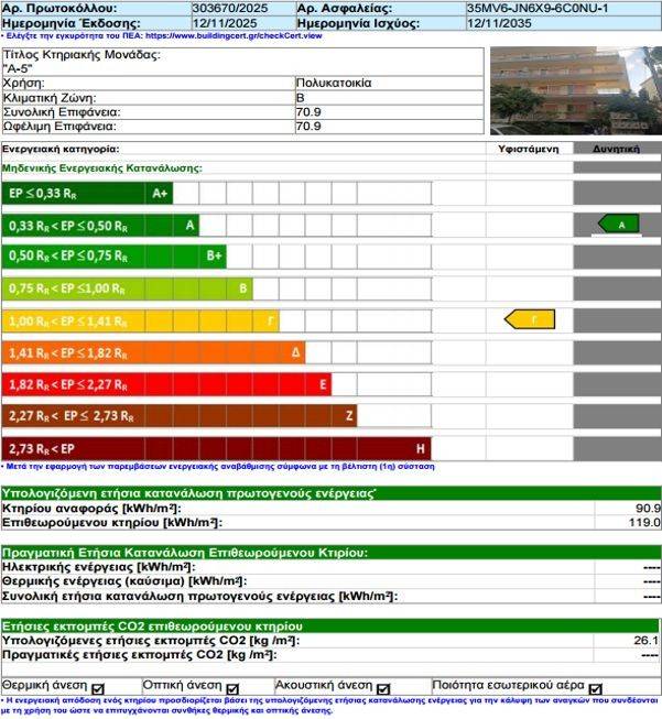 Modern energy-efficient renovated apartment Property Characteristics: 71 sq.m. 1st Floor (like 2nd floor due to building construction) 3 Bedrooms 1 Bathroom Living Room – Kitchen Area Mosaic Floor Oak Floor (in main bedroom) Atomic Heating Natural Gas Air Condition in all rooms Cooker / Oven (new) Dishwasher (new) Shading Awning (new) Mosquito Net (new) Elevator Safety Door Double Glazed Windows (new) Shutters (new) Energy Class C (According to EU energy efficiency measures by 2030) Balcony in every room Construction year 1973 ( fully refurbished in 2025) Building / 24 Apartments / Families / Owners / Fully Refurbished Apartments Located in Ano Pefki (next to Pefki Municipal Stadium) Distance from Metro Kifisia – 1,8 km (24 mins walk) Distance from Metro Marousi – 1,4 km (20 mins walk) Distance from OAKA Sport Center – 4,4 km Distance from Golden Hall Shopping Mall – 4,3 km Distance from The Mall Athens – 2,5 km Distance from KAT Hospital – 1,3 km Distance from Kifisia – 2,3 km Distance from Syntagma Square – 12,7 km Distance from Piraeus Port – 21 km Distance from Athens International Airport – 21,4 km Current Apartment Condition – Excellent (high-quality renovation) Price - Negotiable Building is covered for earthquake, fire and civil liability. Property Location: The property is in Ano Pefki– Athens North Suburbs. Pefki is situated 10 kilometres (6 miles) northeast of Athens city centre. The municipal unit has an area of 2.176 km2. The built-up area of Pefki is continuous with those of the neighbouring suburbs Irakleio, Lykovrysi, Kifisia and Marousi. Pefki consists of two areas: Ano Pefki and Kato Pefki. Pefki is served by Athens Metro Line 1, with the relevant station called "KAT", named after the KAT Hospital that is nearby, and by several bus routes. The nearest motorway is the A6, south of Pefki This spacious home offers three bright bedrooms, a stylish bathroom, a welcoming living room, and a fully equipped kitchen—all thoughtfully updated for modern living. Each room opens to its own private balcony, flooding the space with natural light and fresh air. Enjoy the comfort and efficiency of autonomous natural gas heating, and say goodbye to parking stress—designated municipal parking areas make it easy and convenient for residents. Perfect for families, this apartment is located in a serene, tree-lined neighborhood with excellent schools, parks, and playgrounds just a short stroll away. Whether you're enjoying a weekend brunch at a local café, shopping at nearby supermarkets, or dining out at one of the many restaurants, everything you need is right at your doorstep.