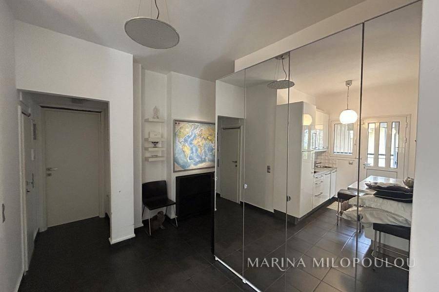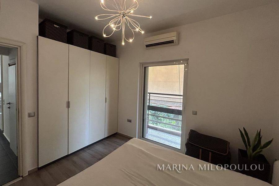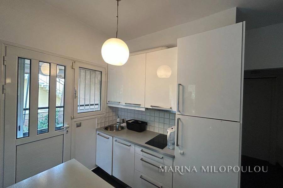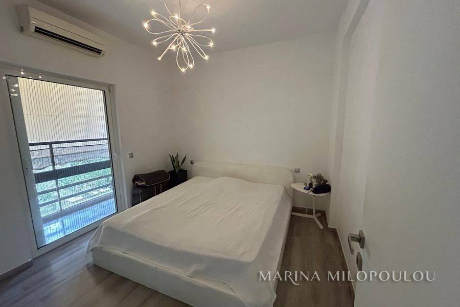 VOULA, Renovated 1st floor apartment, 43sqm, at the back of the building, north facing It consists of an open plan living room, fully equipped kitchen, 1 bedroom and 1 bathroom It has a security door, oil central heating, 2 a/c, double glazing, tiled floors, laminate in the bedrooms, veranda around the perimeter, security alarm, elevator. Maintenance expenses 25€ Zone price 2800€ It is part of a building of 12 apartments, with a view of the building's garden, 50m from the local market, 1.5km from the center of Voula, 300m from the sea, 850m from the sandy beach of the area.
