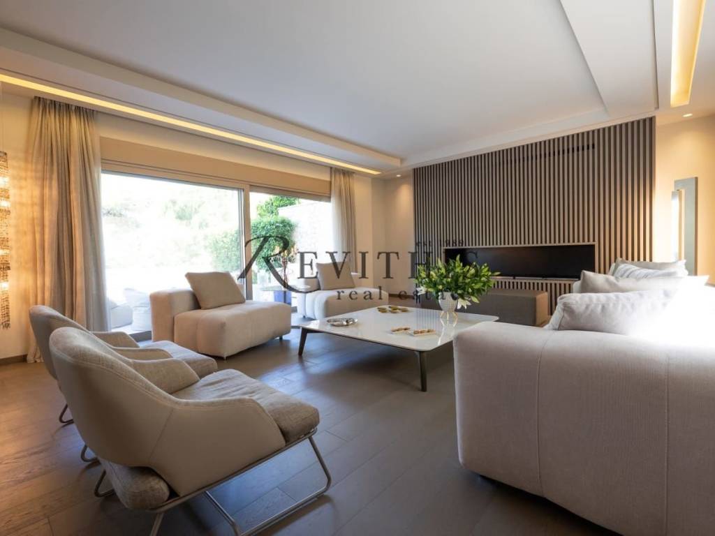 Discover the ultimate living experience on the Athenian Riviera with this unique villa in the Pigaðakia area, one of the most sought-after neighborhoods of Voula. Built in 2020 with contemporary architecture and meticulous attention to detail, the residence combines luxury, functionality, and Mediterranean aesthetics. The villa offers 364 sq.m. across 4 levels and features a private pool with a landscaped garden, while the interior spaces are designed for comfort and entertainment, meeting the needs of a discerning family. Key Features: ✦ Total Area: 364 sq.m. over 4 levels (basement, ground floor, 1st & 2nd floor) ✦ Plot: 600 sq.m. ✦ Bedrooms: 4 bedrooms + 1 staff room with bathroom ✦ Bathrooms: 4 + 1 WC ✦ Pool & Garden: Private pool with landscaped surroundings ✦ Parking: 2 enclosed parking spaces in the basement ✦ Elevator: Connects all levels of the residence Floor Distribution: ✦ Basement: Entertainment/playroom/home cinema area with kitchen, bathroom and WC, laundry space, 1 small bedroom and veranda ✦ Ground Floor: Open-plan kitchen, dining area, living room with bioethanol fireplace and large windows overlooking the garden and pool ✦ 1st Floor: 3 bedrooms, one is a master with en-suite bathroom and 2 additional bedrooms, one of which features a glass walk-in closet ✦ 2nd Floor: 1 room with fireplace and panoramic view, ideal as a living room, bedroom, or office with bathroom, private small veranda with partial sea view Technology & Comfort: ✦ High-performance aluminum thermal and soundproof frames ✦ Smart Home: Remote control for lights and shading shutters ✦ Underfloor heating with state-of-the-art heat pump ✦ Solar system for hot water ✦ Fully furnished with a package of designer furniture and home appliances