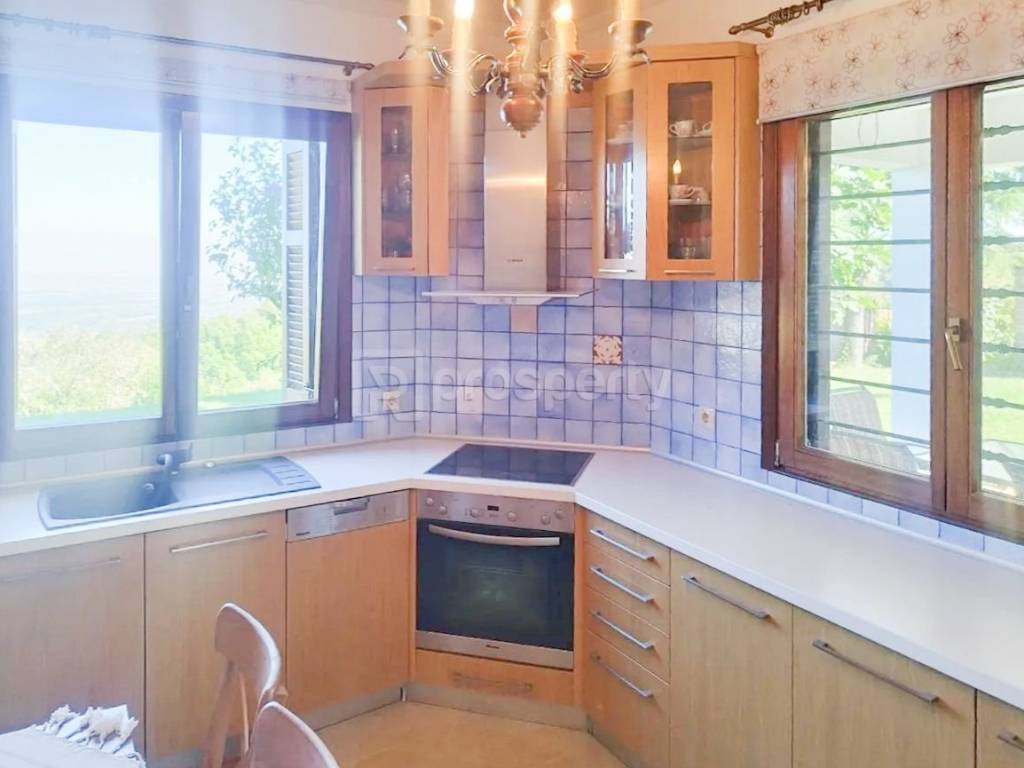 Two-Storey Detached House – 297 sq.m. in Griva, Paionia, Kilkis Prefecture A luxurious two-storey detached residence with a total area of 296 sq.m., built on a 1,267 sq.m. plot, offering panoramic views of Griva, Paionia (Kilkis Prefecture). Constructed to high standards, on a gently sloping plot, the property features reinforced concrete foundations and double masonry walls with intermediate thermal insulation, ensuring durability, energy efficiency, and long-term structural stability. Inside, the residence includes 4 bedrooms, 2 kitchens, 2 living rooms, 3 bathrooms, and a pantry room. The master bedroom features a spacious built-in walk-in closet. A beautifully crafted fireplace, made by an experienced artisan, stands as a centerpiece in the living area, adding warmth and charm. The house has 5 entrances with high-quality frames, a complete electrical installation with alarm system, and provisions for a boiler and heating units. An internal staircase connects the two levels of the home, which are currently separated by a partition wall for functional reasons, yet can easily be reconnected to form one unified space. The outdoor area is elegantly landscaped with handcrafted Karystos stone and exterior lighting, highlighting the property’s architectural design. The garden extends over three terraced levels, planted with a variety of fruit trees—olive, fig, persimmon, apricot, cherry, peach, quince, and plum—as well as ornamental plants including roses, lavender, rosemary, jasmine, pines, cedars, and blue cedars. A stone corner fountain with lighting, a waterfall with recirculation system, and three built-in outdoor taps complete the garden, creating an atmosphere of natural beauty and tranquility. On the same level, there is an underground water tank with a capacity of 30 cubic meters, and an independent sewage system. An area includes a stone-built oven, sink, water supply, outdoor toilet, and storage room, all constructed with the same carefully selected stone that defines the entire property. The grounds also feature a complete underground electrical network for garden lighting, illuminating every corner of the estate at night. This detached house is truly a jewel, combining traditional stone craftsmanship with modern functionality and refined aesthetics. With its unique view, meticulous architecture, and natural surroundings, it offers an ideal living environment for those seeking quality, comfort, and harmony with nature — whether as a permanent residence or a holiday retreat. https://marketplace.theprosperty.com/listings/14613 ☎️ 210 6812500.