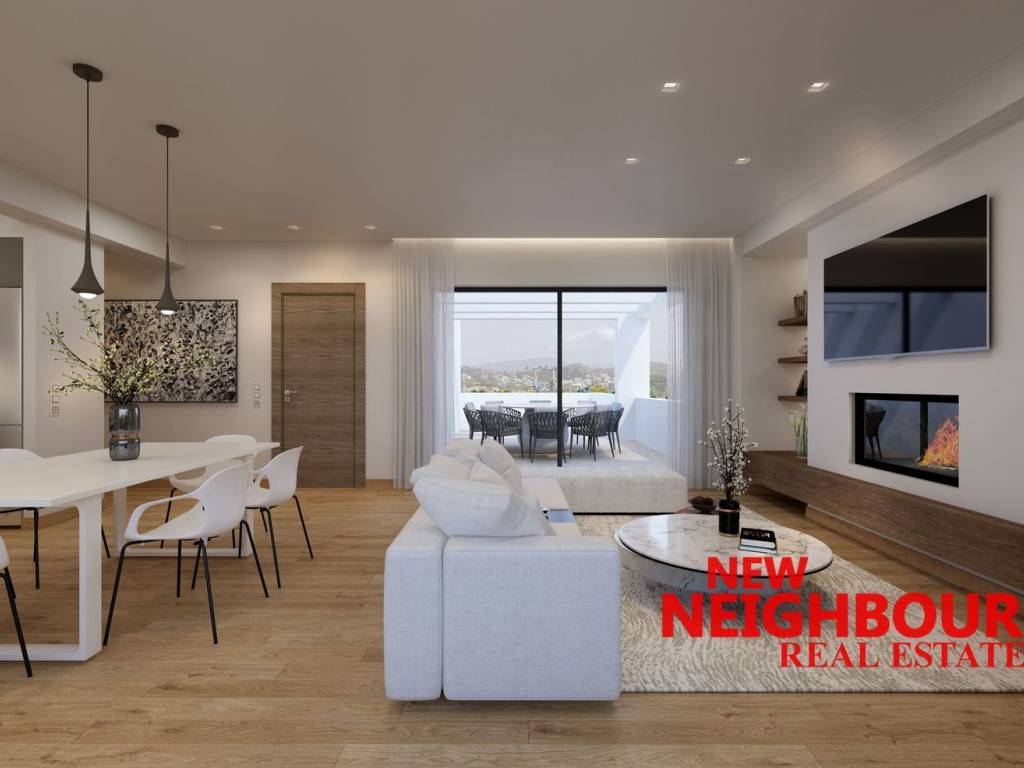 For sale is a 99 sq m apartment under construction in Kato Chalandri, 3rd floor, ready for delivery in February 2027. It has a spacious living room with an open kitchen, 2 bedrooms and 2 bathrooms. It has underfloor heating with an individual natural gas boiler, air conditioning, energy fireplace, electric water heater, energy-efficient windows with thermal breaks, while the entire building is surrounded by a thermal facade and is energy class A. It also has a parking space and a storage room in the basement. It is a very beautiful house with an exemplary layout. It is located in a very quiet neighborhood, close to central roads. Price 500,000 euros Property Code 22326