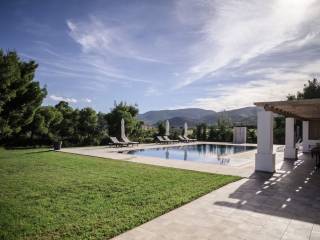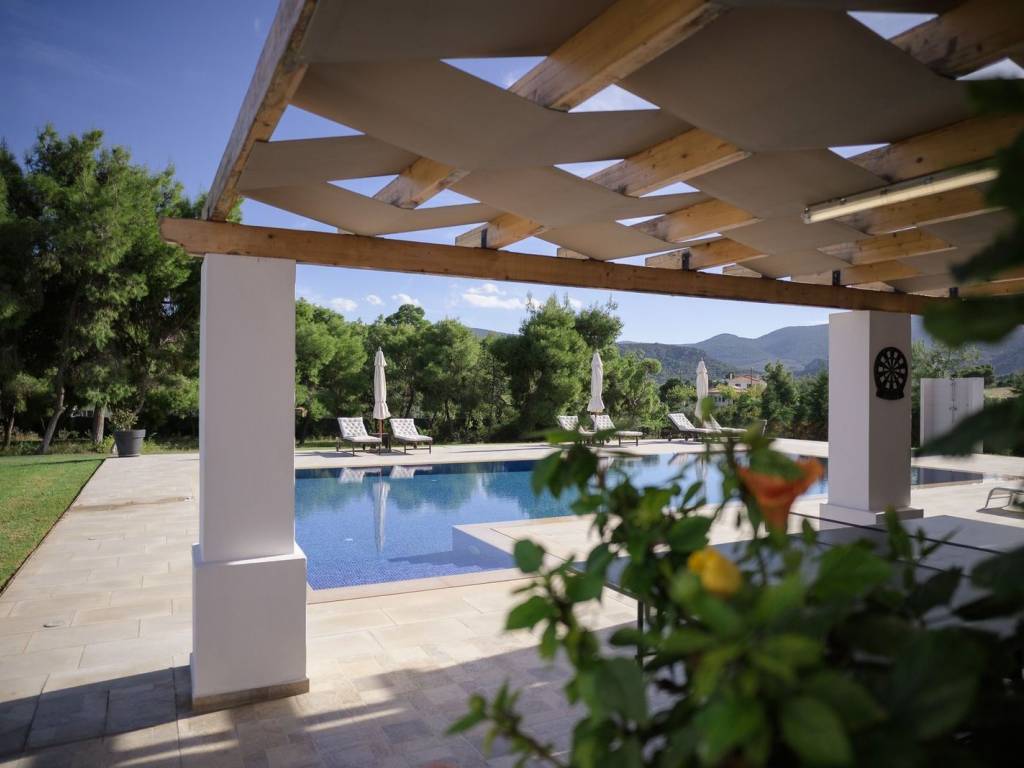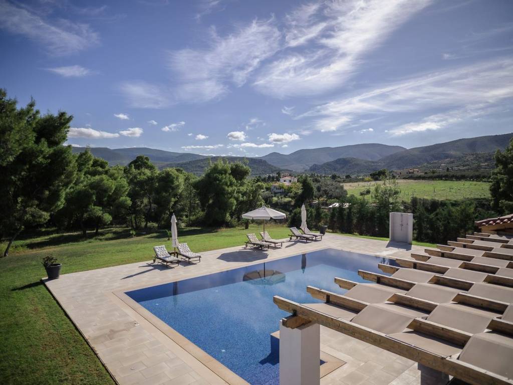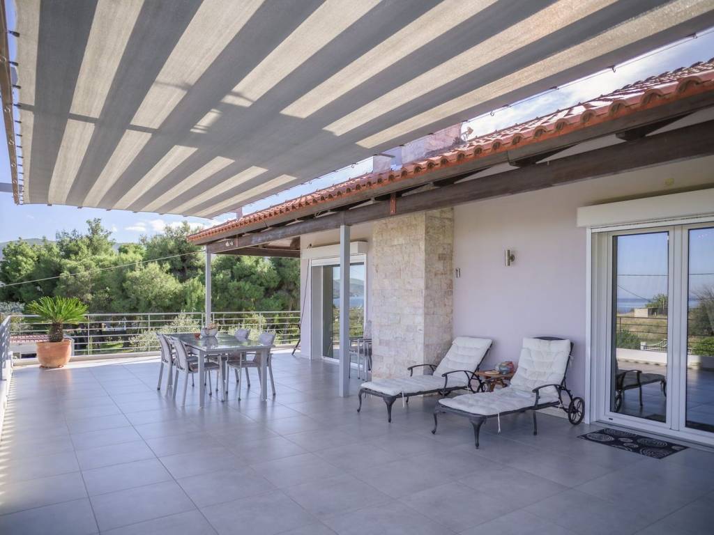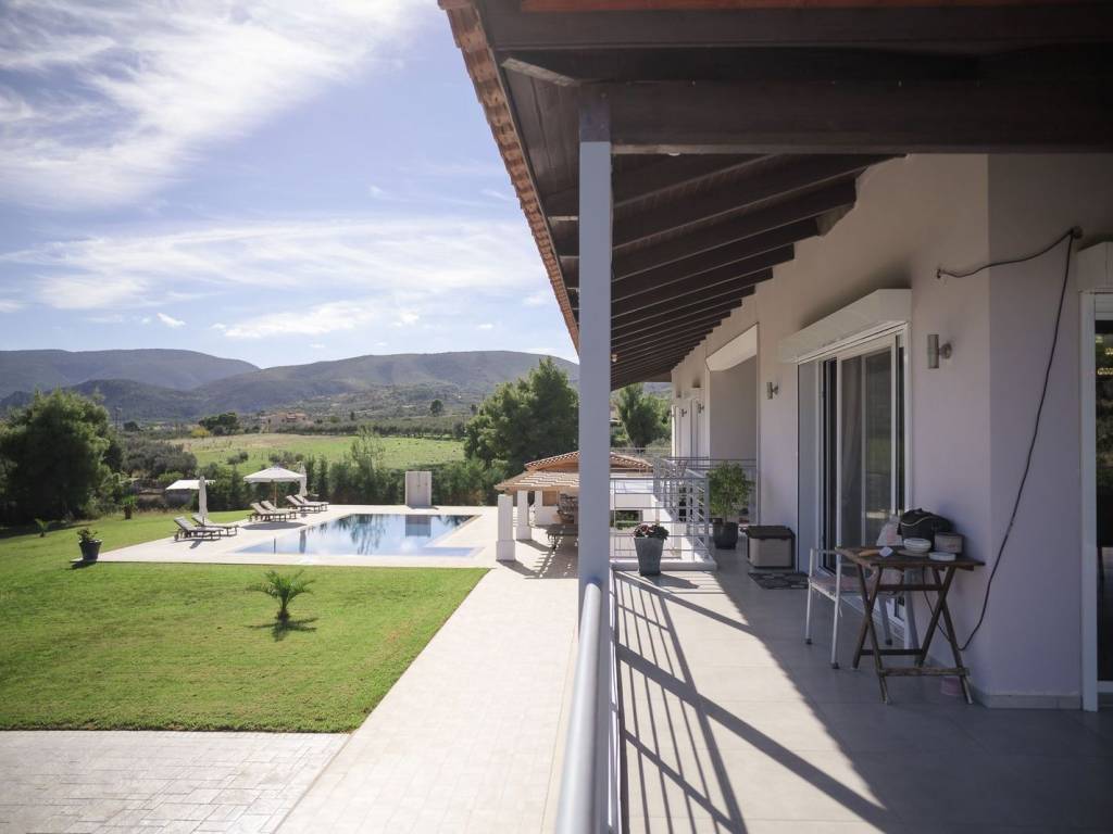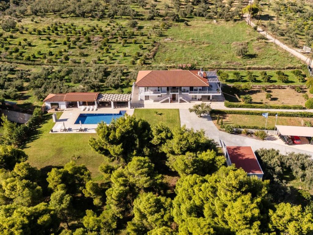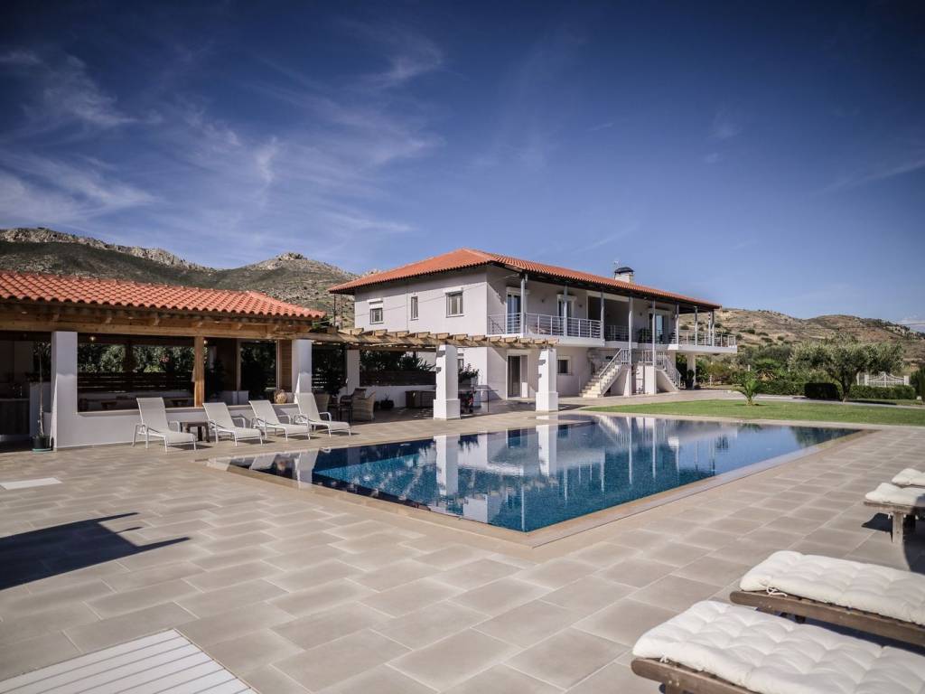 On a lush, amphitheatrical plot of 10,000 sq.m., a luxurious villa of 360 sq.m. is for sale, fully renovated in 2022, with an unparalleled view of the Saronic Gulf and the surrounding mountains. The residence combines the tranquility of nature with high amenities and absolute privacy, offering an ideal choice for both permanent residence and vacation use. The villa is developed on two levels, with a total area of 360 sq.m., constructed in 1991, with a complete renovation that upgraded every space to modern standards of luxury and functionality. It features eight bedrooms and five bathrooms, providing comfort and independence for large families or hosting guests. Each floor is autonomous with a separate entrance, while there is provision for connecting the two levels with an internal staircase. The ground floor has disabled access, making the property suitable for all users. The interiors are characterized by high aesthetics and functionality. The luxurious kitchen has granite countertops, the main living room is adorned with a fireplace, while the spaces are bathed in natural light and enjoy a wonderful sea view. The bathrooms are modern and fully equipped, while there are ample storage spaces and a garage with parking for more than five vehicles. The outdoor areas are a true haven of relaxation and entertainment. In the well-maintained garden dominates the infinity pool with a panoramic view, while the outdoor kitchen features a BBQ, wood oven, and gazebo with pergola, ideal for moments with family and friends. The plot includes olive trees, orange trees, and lemon trees, as well as a section of forest land, adding natural beauty and tranquility to the landscape. There is a borehole, a 20-cubic meter tank, and an automatic irrigation system for the garden, while the photovoltaic panels ensure energy autonomy and low operating costs. The villa is located in an exceptionally privileged, amphitheatrical location with views of the sea and the mountains of Corinthia. It offers absolute privacy and serenity, within short distance from the seaside areas of Loutra Oraias Elenis and Almiri, while remaining easily accessible from Athens. This is a unique opportunity to acquire a luxurious residence in one of the most beautiful areas of Corinthia, ideal for those seeking high quality of life, tranquility, and an unparalleled view of the endless blue. Location: The prefecture of Corinthia is located in the northeastern Peloponnese. Unique Features: The prefecture has a variety of destinations ideal for summer and winter getaways. Corinthia is characterized for its rich diversity as it perfectly combines mountain, nature and sea escapes while it has a rich history and culture. A trademark of the prefecture of Corinth is the Corinth Canal, an impressive project that is navigated every year by more than 15,000 ships. Important cities of the prefecture are Corinth, Loutraki, Xylokastro, Agii Theodoroi and Kiato. Accessibility: Access to Corinthia is easy and can be done by car through the existing road network, and is only 84 km away from Athens and 132 km from Patras. Furthermore, long-distance buses provide regular services to most areas of the prefecture and there is a railway connection between the prefecture of Corinthia and Athens. Investment Opportunity: Greece is one of the most popular holiday destinations in the world, with the prefecture of Corinthia being in particularly high demand and becoming an increasingly attractive destination for investors in winter and summer.
