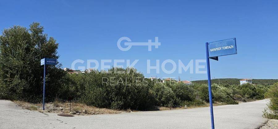 Tamynes, Aliveri - Plot 627sqm corner, frontage 2, land use generic residential, slope plane, unobstructed view, frontage, for general use, within city plan, zoned, residential zone, integral, buildable, sea front, electricity, water, access from asphalt, low noise level, investment property, close to sea (up to 200m), close to market (up to 200m).