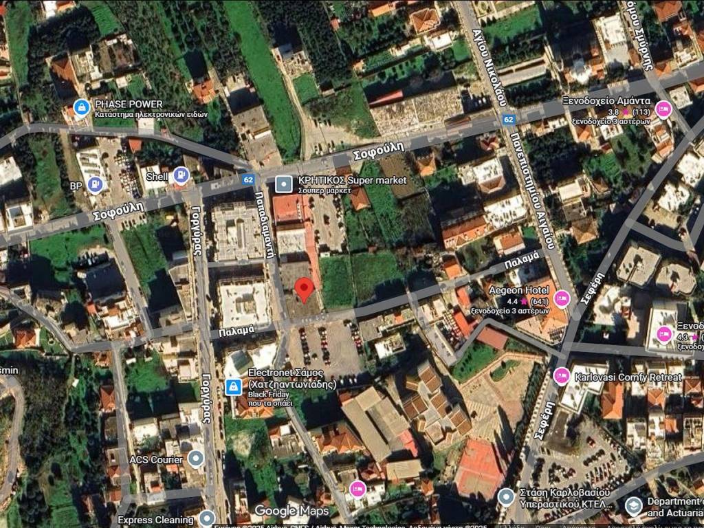A 288 sq.m. ground floor shop is available for sale in the Livadia area of Karlovasi, Samos. The property was built in 1993.