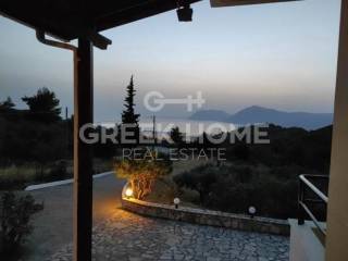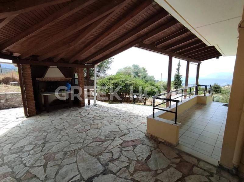 Rio, Argyra - Detached House 126sqm plot 2653sqm, fully furnished, bedrooms 2, ground floor, renovated, year built 1997, renovation year 2007, energy class D, living room, kitchen, bathroom, heating type: autonomous (electricity), air condition, parking covered,2, quiet, luminous, sea view, storage space, fireplace, balconies, garden, aluminum frames, door screen, ceramic tiles floors, night electricity discount rate, secure door, luxurious, barbeque, western orientation, close to sea (up to 5000m), close to hospital (up to 5000m), close to metro/train (up to 100m).
