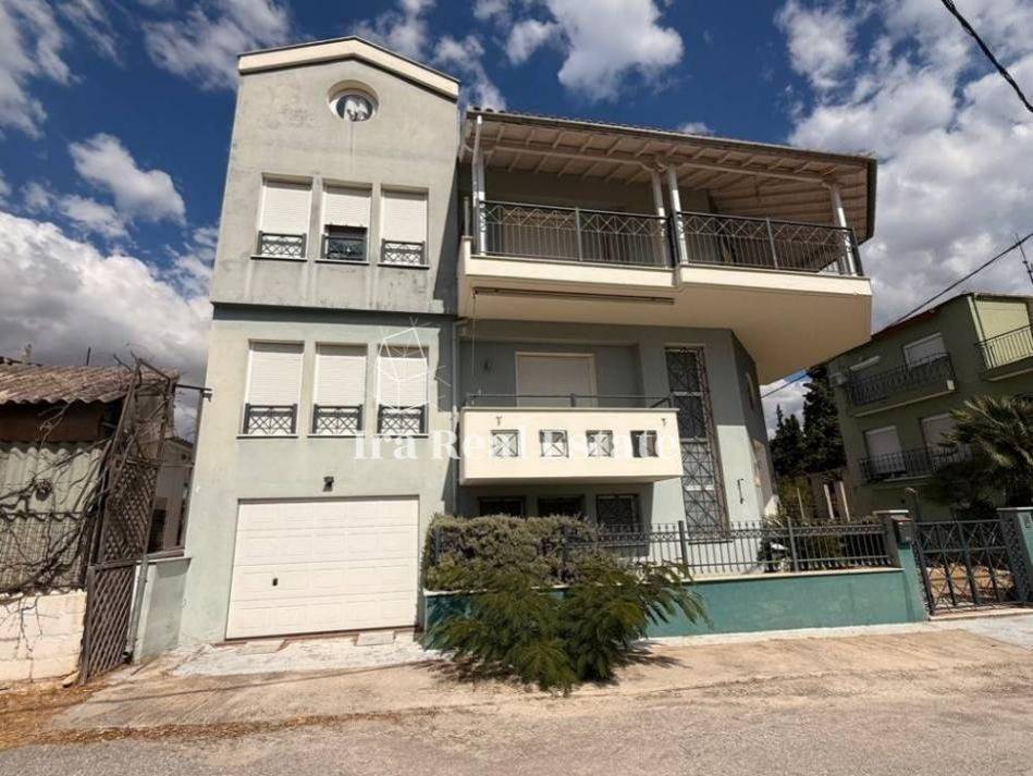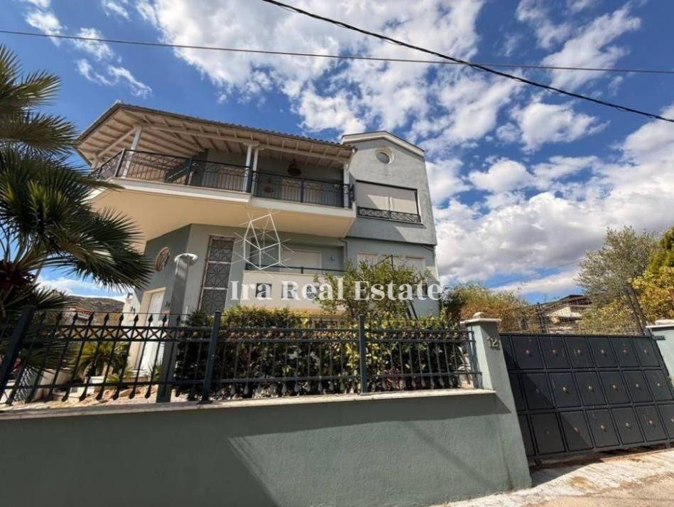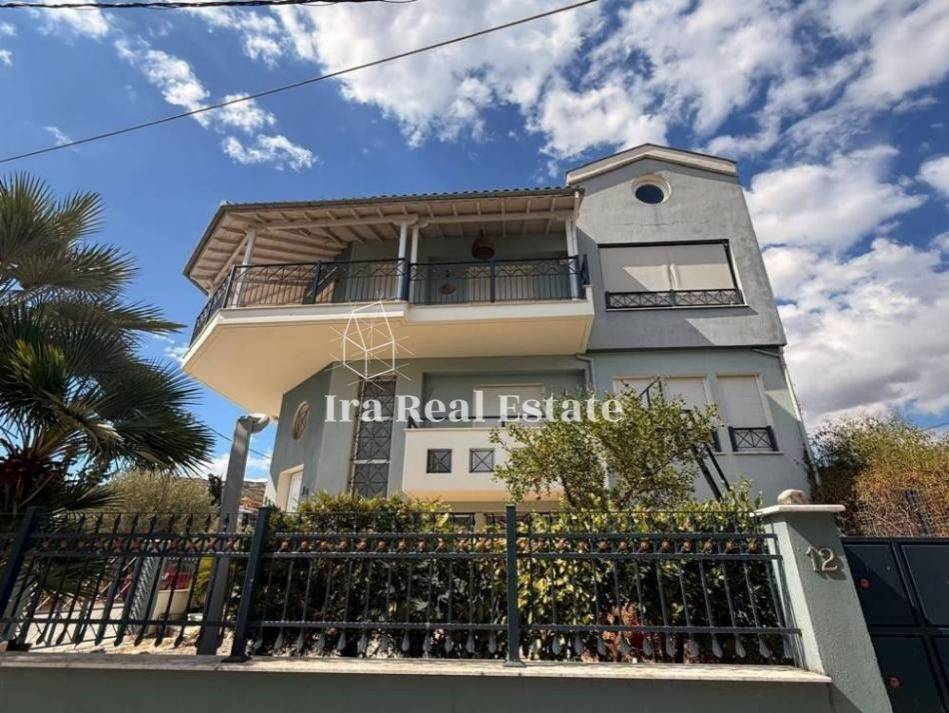 Volos, Nees Pagases: For sale: an impressive, bright, and corner luxury villa of 330 sq.m. on a 240 sq.m. plot, with four façades, located just 350 meters from the sea. The property is developed over three levels, featuring autonomous oil heating, built with high-quality materials, and has been occupied only minimally.