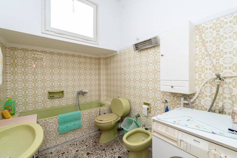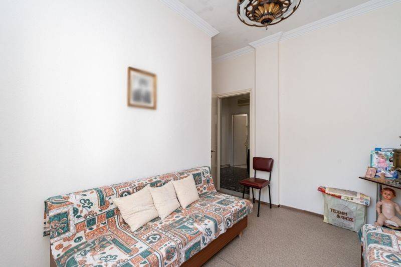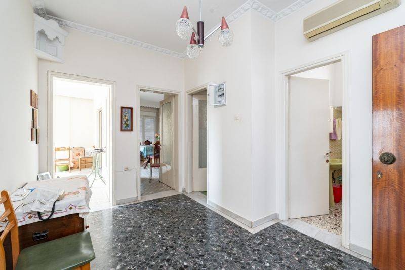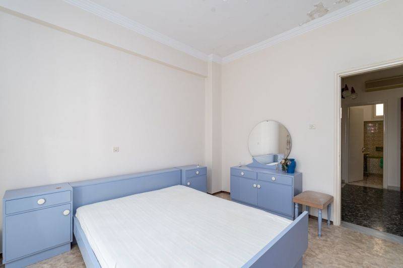 2. The apartment has a floor area of 113 sq.m. It was built in 1973 with energy class Z, entrance steps and internal staircase made of Kavala marble. Specifically, it is a corner apartment with a bright and airy facade. It consists of 2 bedrooms, 1 open-plan living room with dining area, 1 kitchen, 1 bathroom, and 1 storage room. The floors are mosaic and synthetic tile, while the window frames are high-quality aluminum with double glazing and screens. The apartment has a perimeter balcony and independent heating with 2 air conditioners and an oil stove. It is possible to move in as it is. However, it can also be renovated with the highest (due to its age) state subsidy rate, adapted to different needs according to the wishes of the new owner.