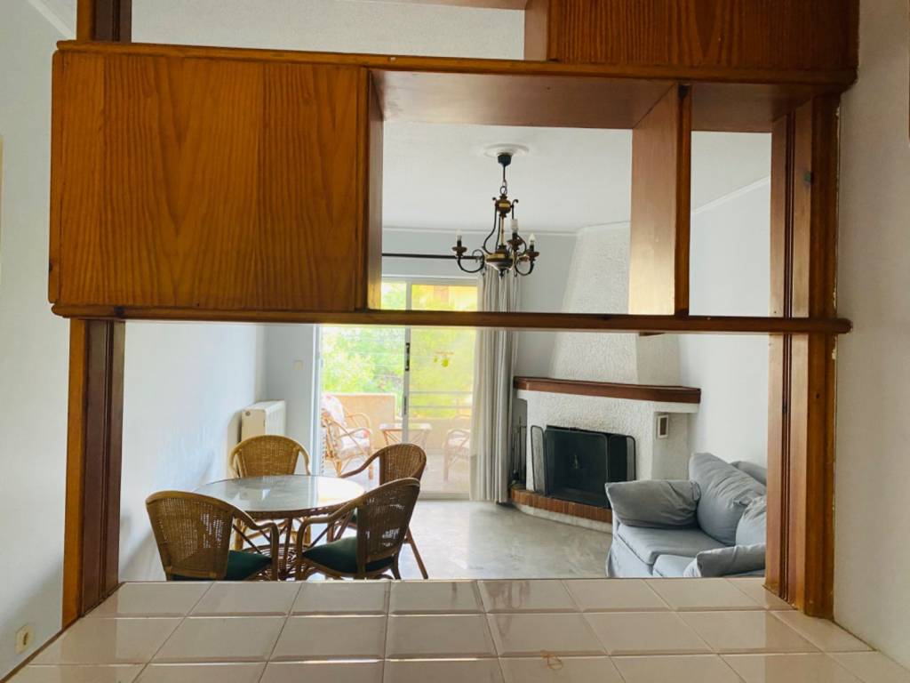 A bright and airy 64 m² apartment is available for rent in Saronida, just 60 metres from the sea. Located on the 2nd floor of a two-storey building, it consists of a living room and kitchen in an open‐plan space, two bedrooms and one bathroom. The apartment features individual oil heating, a fireplace, air conditioning and a solar water heater, while the floors are marble and the window frames aluminium. In addition, it includes a small storage room, an open parking space, awnings and three spacious balconies with lovely views. The property is a corner unit. It is surrounded by lawn and trees, offering a sense of tranquility and nature, and is only 29 km from the airport. Year of construction: 1989. Energy class: D.