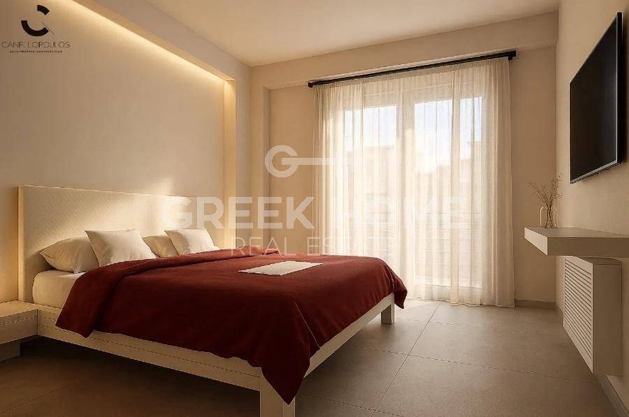 Patra, Laggoura - Apartment 80sqm plot 478sqm, bedrooms 2, 2nd, under construction, energy class A, living room, hall, kitchen, bathroom, heating type: autonomous (fan coil), air condition, parking ground floor, quiet, luminous, storage space, solar heater, external thermal insulation, balconies, elevator, garden, aluminum frames, double glazed windows, ceramic tiles floors, night electricity discount rate, secure door, luxurious, investment property, close to park (up to 500m).