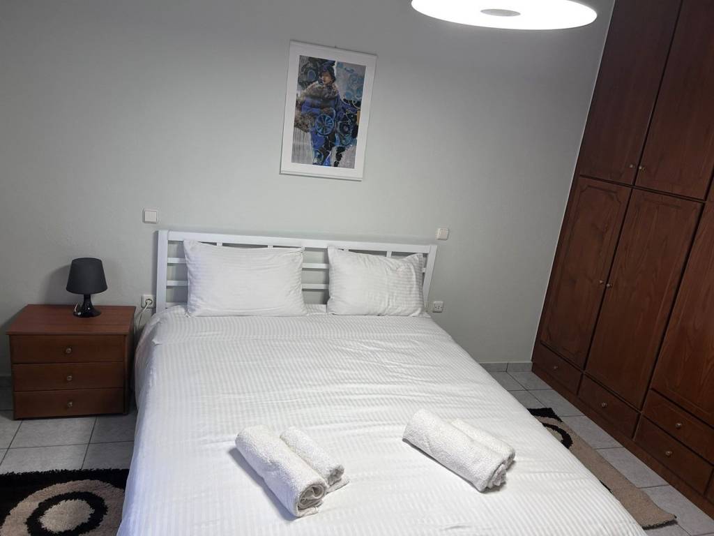 Επιπλομένο διαμέρισμα 50τ.μ. σε πιλοτή 2όροφου σπιτιού περιφραγμένο με καγκελόπορτα. - Δεν υπάρχουν κοινόχρηστα - Ατομική θέρμανση αερίου - Κουφώματα αλουμινίου - Εντοιχισμένη διπλή ντουλάπα - Έπιπλα των φωτογραφιών μπορούν να παραμείνουν για τη χρήση σας (καινούριο διπλό κρεβάτι 160χ200, κομοδίνο, βιβλιοθήκη, καναπές, τραπέζι, καρέκλες, φουρνάκι, ψυγείο) - Μεγάλο μπάνιο - Θέση παρκινγκ στην πιλοτή - Χρήση πιλοτής και ακάλυπτου χώρου