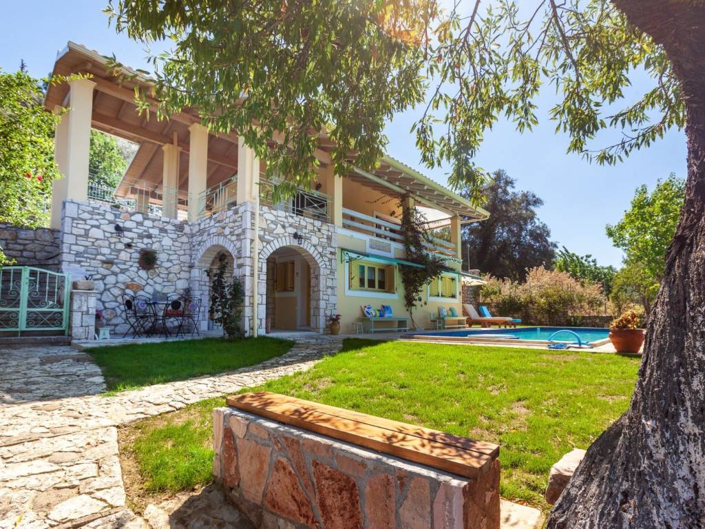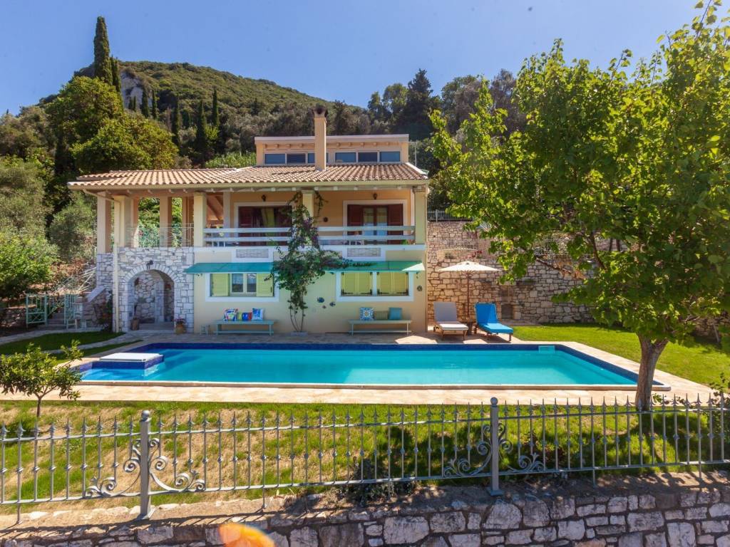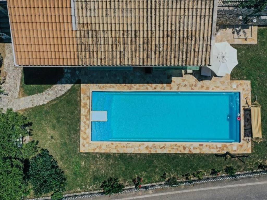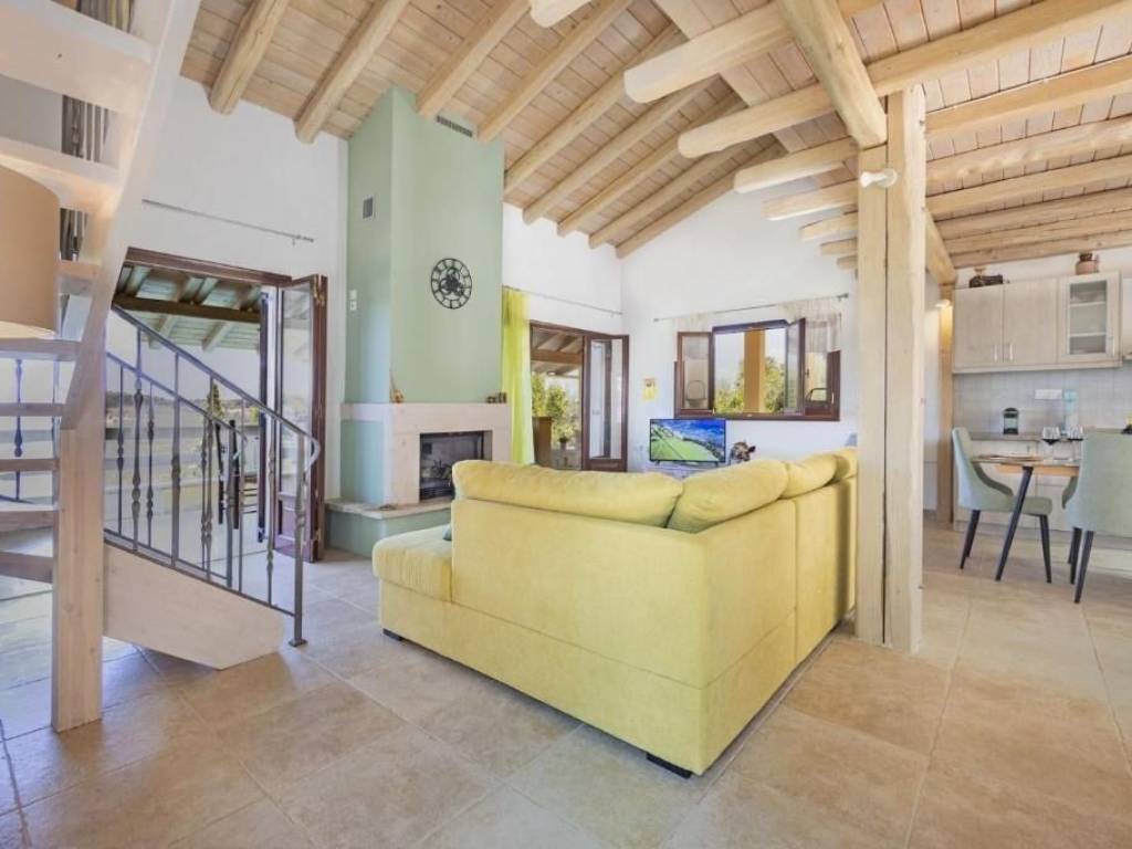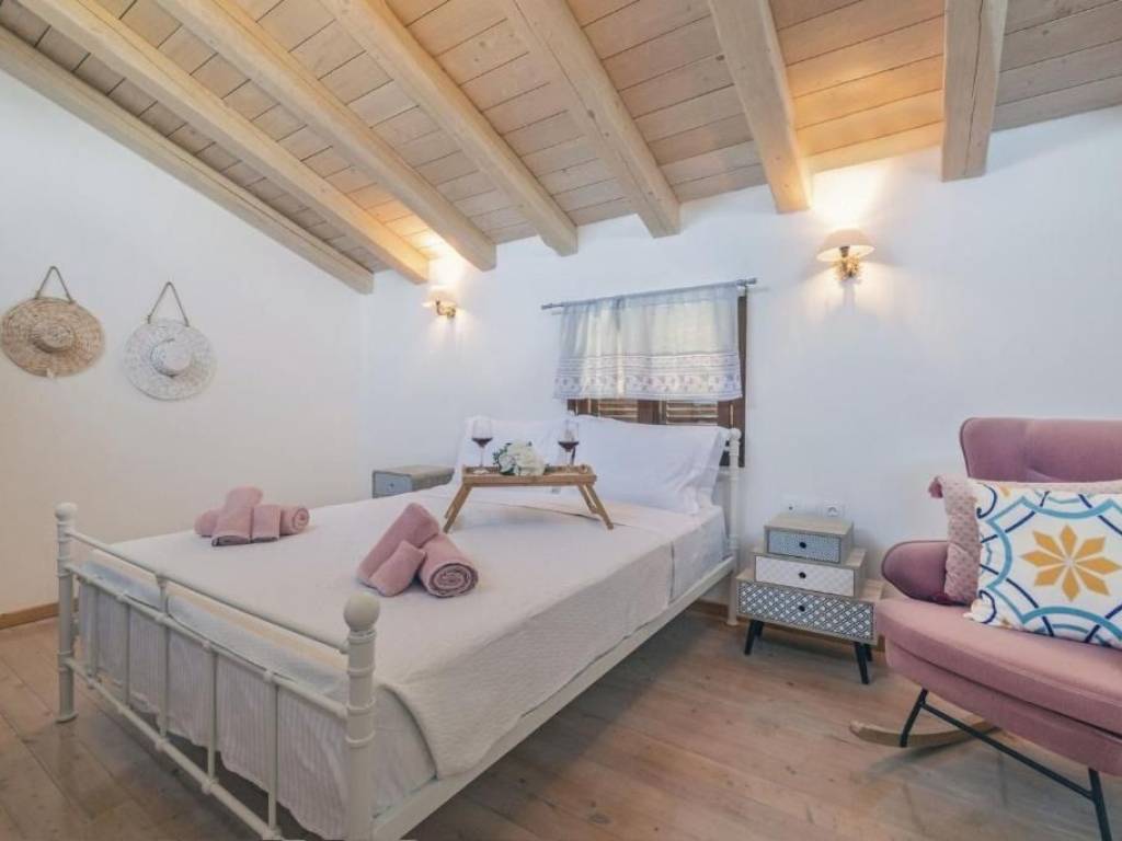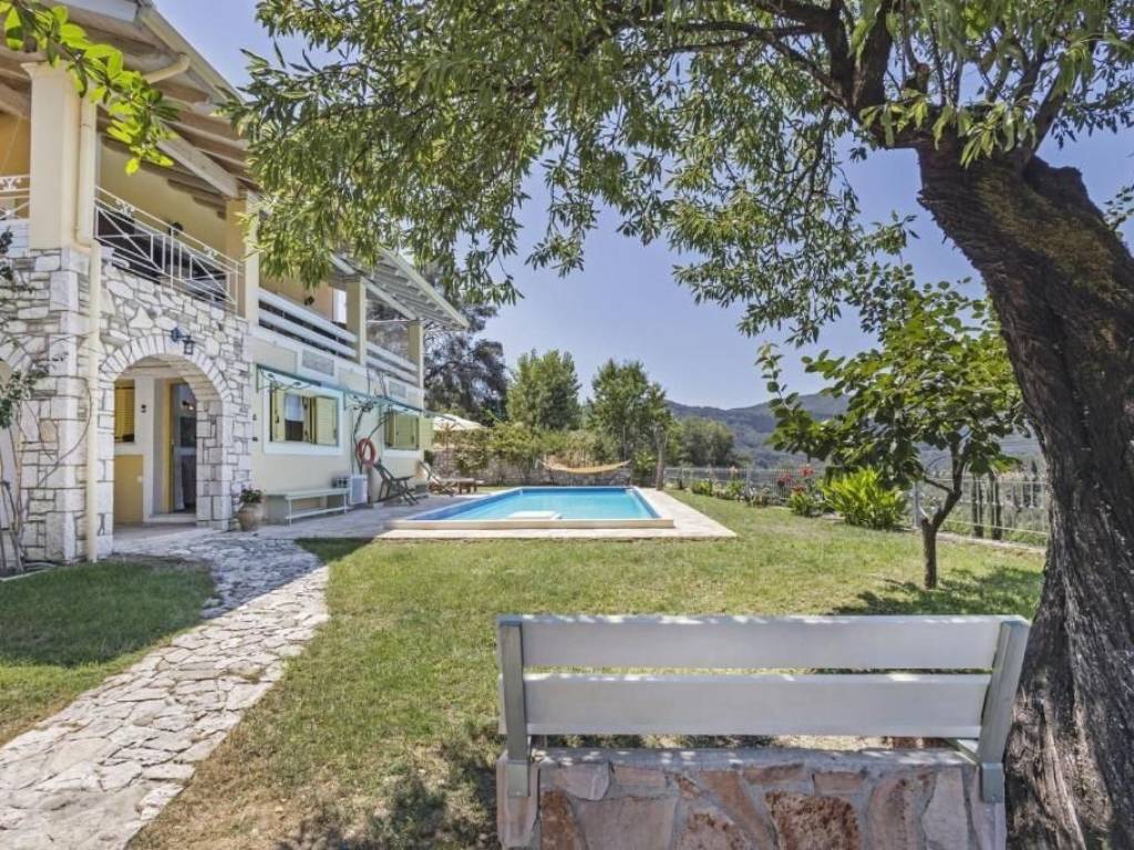 Nestled in the serene village of Arkadades, this charming three-level villa perfectly combines traditional Corfiot architecture with modern comfort. Built on a 580 m² plot, the property offers privacy, natural beauty, and breathtaking panoramic views over the lush green hills of northwestern Corfu. The villa spans 103 m² and features: Pool Level: An independent guest area with a fully equipped kitchen, bathroom, sofa bed, and air conditioning — ideal for guests or short-term rentals. Second Level: A welcoming living room with an energy-efficient fireplace, a stylish kitchen with high-end appliances, and a bathroom with a bathtub. The outdoor areas include a stone-paved terrace overlooking the pool and surrounding villages, as well as a backyard with a traditional well and barbecue area. Third Level: A spacious bedroom with skylights, private bathroom, and air conditioning, creating a peaceful retreat with an intimate atmosphere. Outside, the 10×4 m swimming pool invites you to relax under the Ionian sun, surrounded by fruit trees and Mediterranean flora. The villa is located just 7 km from the renowned Agios Georgios Pagon beach, one of Corfu’s most beautiful coastal destinations. Currently, the property is successfully rented during the summer season and enjoys an excellent guest rating of 9.5 on Booking.com, confirming its strong reputation and investment potential. The property also holds a permit for an additional 130 m² of construction, offering significant expansion potential. This villa is a true hideaway — a perfect blend of rustic charm, comfort, and development opportunity, ideal as a private residence or a boutique holiday retreat.