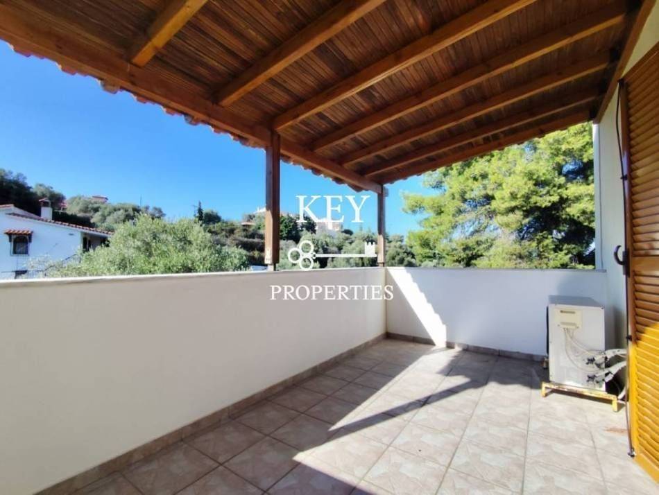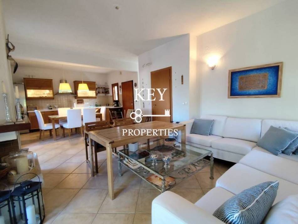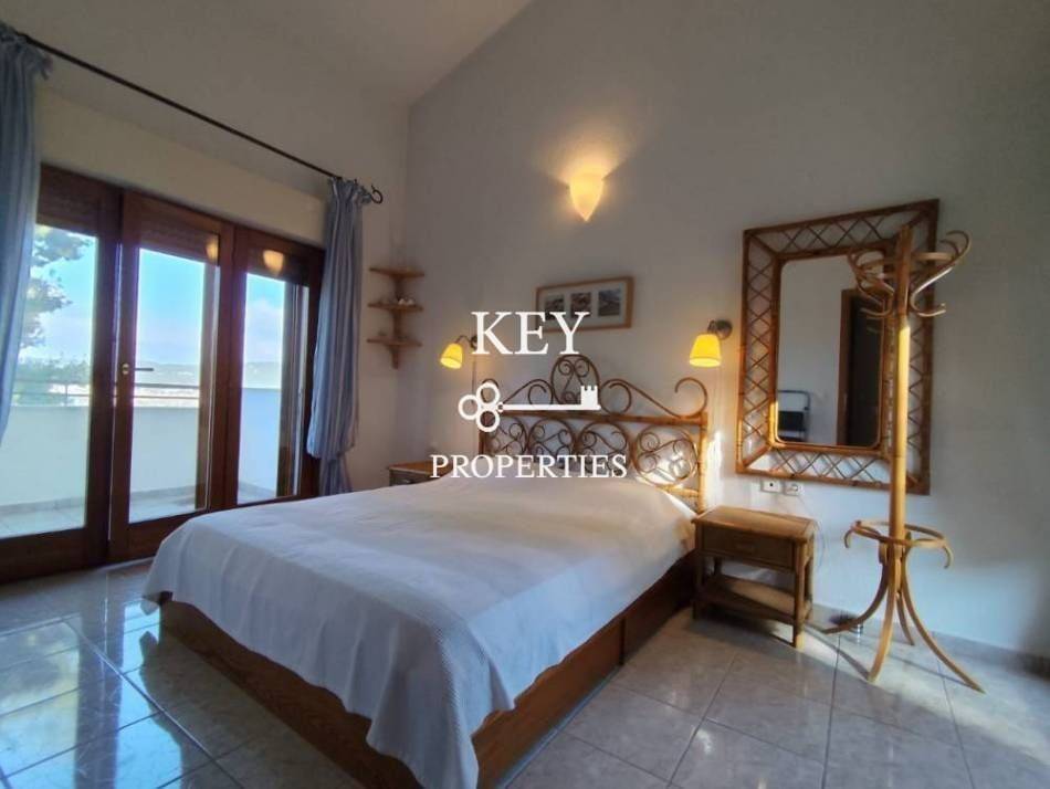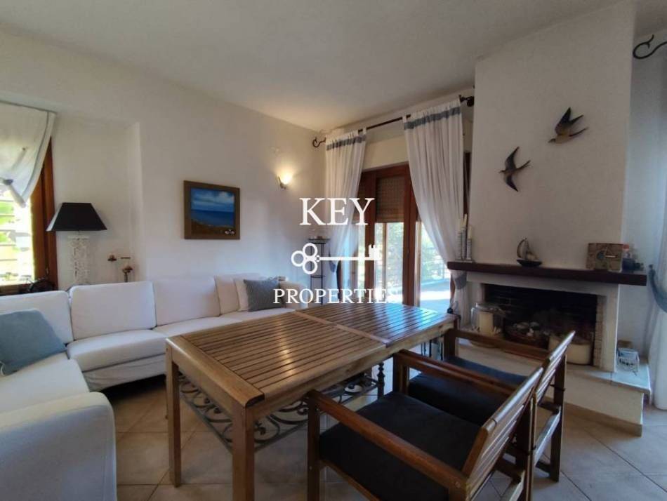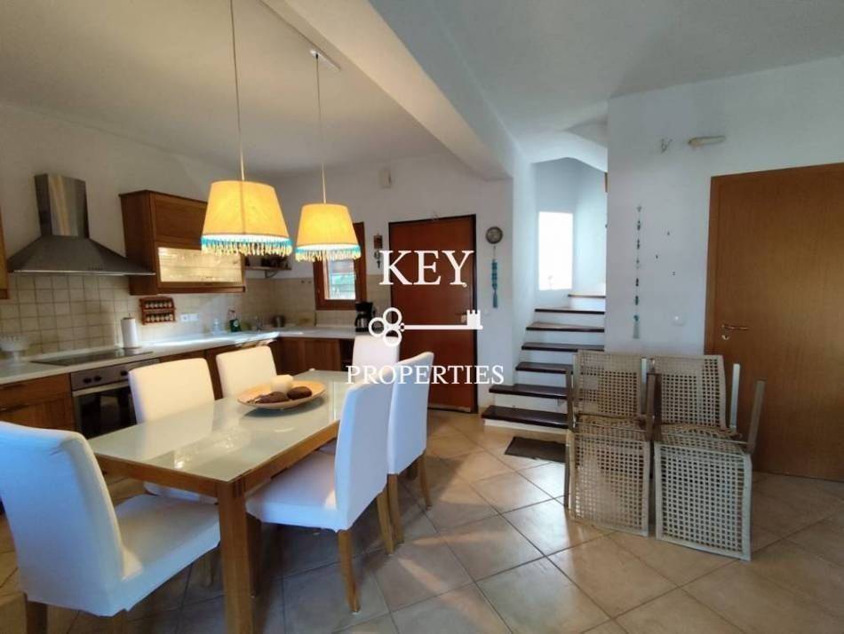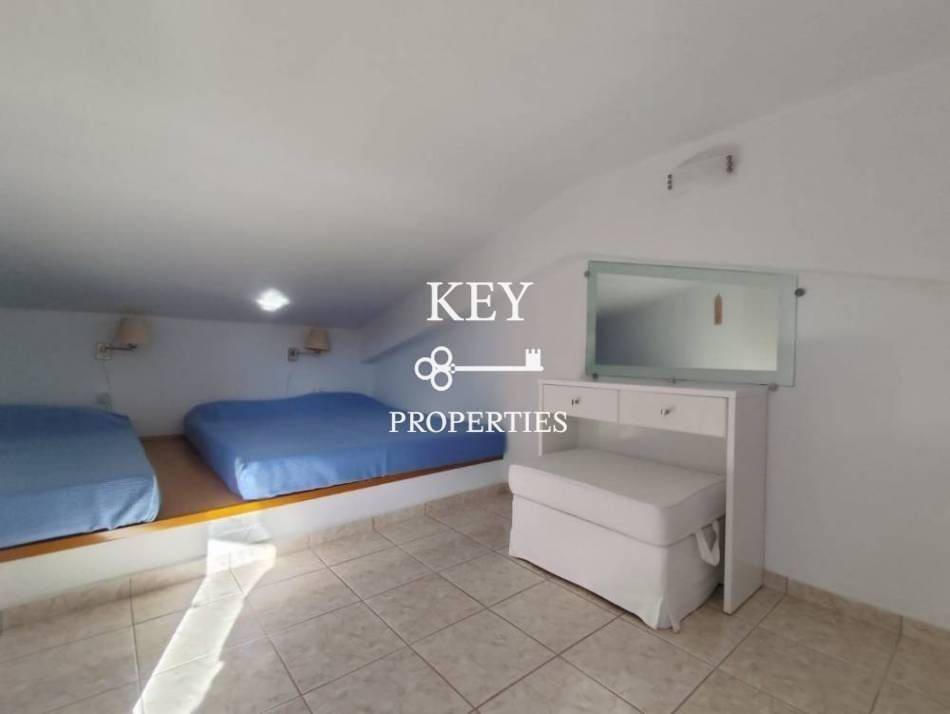 Golden Visa approved. Luxuriously built maisonette with unlimited sea view 190sq.m. net, for sale in the area of Fourka. It is spread over three levels and an attic. It consists of three spacious bedrooms, a bright open plan kitchen with living room, two bathrooms and a WC. The first level (approximately 85sq.m.) is autonomous and can be converted into a ground floor apartment. It is furnished, has electrical appliances, a fireplace, a private garden, large verandas and two parking spaces. It is situated in an ideal location close to the beach, beach bars, and supermarket.