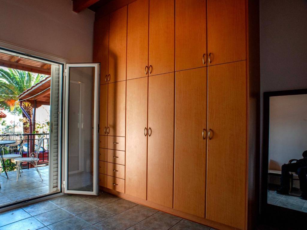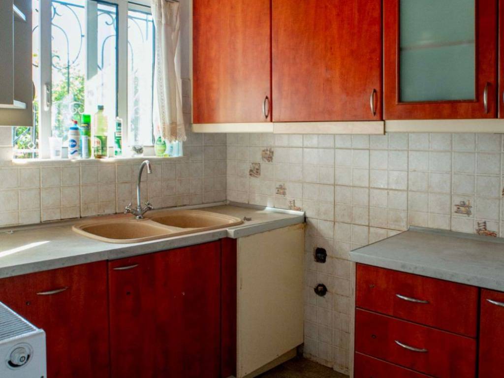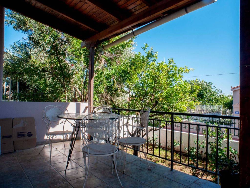 The house has a garden with lemon trees, orange trees, pomegranate trees, bougainvillea, night-blooming jasmine, rose bushes, and a vineyard. The view from the first floor is of the Gulf of Evia. It is located in a residential area with a full local market, and the distance from the sea is a 20-minute walk with no uphill or downhill slopes. The 406 bus stop is 10 minutes away. The house has been partially renovated and will be ready to move into in 15 days.