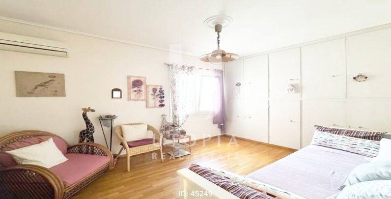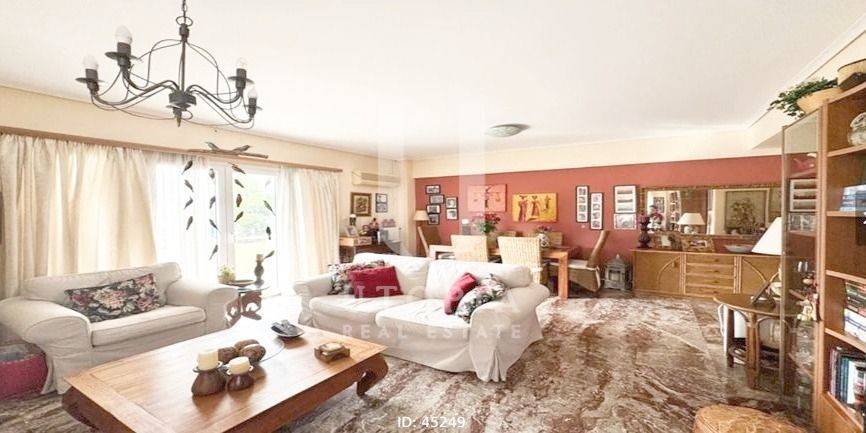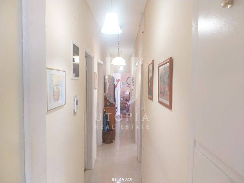 Halandri - Apartment 135sqm bedrooms 4, levels 1, 3rd, very good condition, year built 1978, renovation year 1999, energy class G, living room, hall, kitchen, bathroom, wc, heating type: central (oil), air condition, parking ground floor, dual aspect apartment, frontage, solar heater, balconies, tents, elevator, loft storage, garden, aluminum frames, double glazed windows, door screen, wood & marble floors, separate kitchen, night electricity discount rate, secure door, video doorbell, residential zone, access from asphalt.