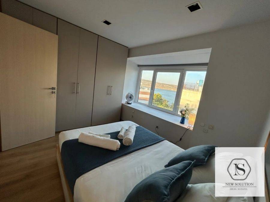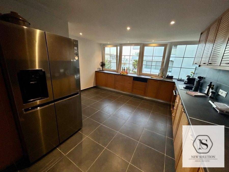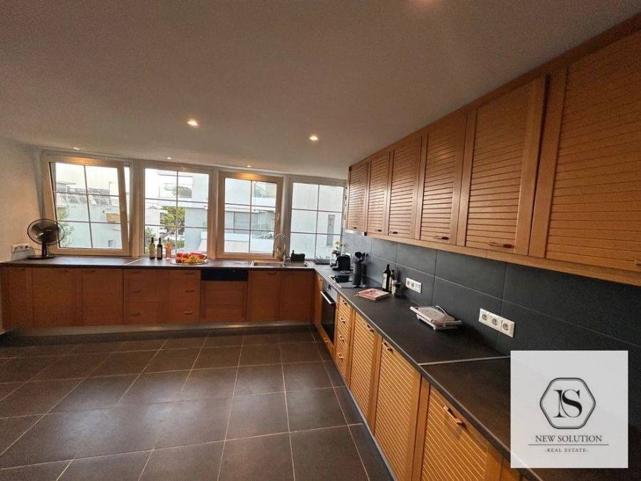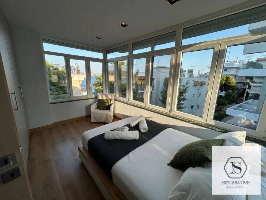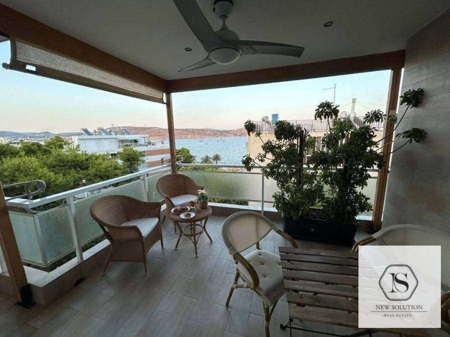 Vari-Varkiza, Varkiza, Apartment For Rent, 130 sq.m., Property Status: Amazing, Floor: 3rd, 4 Bedrooms 1 Kitchen(s), 2 Bathroom(s), 1 WC, Heating: Autonomous - Electricity, View: Sea view, Building Year: 1975, Energy Certificate: D, Floor type: Wooden floors + Tiles, Type of door frames: Aluminum, Features: Elevator, Security door, Night stream, Electric Appliances, Double Glazed Windows, Balcony Cover, Balconies, Pets Allowed, Furnished, Luxury, Penthouse, Roadside, Bright, AirConditioning, Solar water system, Distance from: Seaside (m): 50, Price: 3.000€. NEW SOLUTION REAL ESTATE, Tel: (+30) 210 9680099-(6944848414), email: info@newsolution.gr
