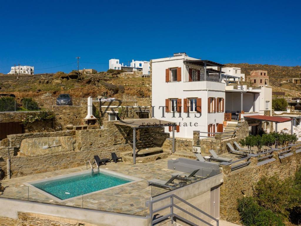 Detached house For sale, floor: Ground floor, 1st (2 Levels), in Tinos - Vourni. The Detached house is 190 sq.m. and it is located on a plot of 1.000 sq.m.. It consists of: 5 bedrooms (2 Master), 4 bathrooms, 2 kitchens, 2 living rooms and it also has 4 parkings (4 Open). The property was built in 2002 and it was renovated in 2024. Its heating is Autonomous with Wood Stove, Heating per level, Radiator are also available, it has Alluminum frames with Double glazed windows, the energy certificate is: B and its floors are Tiles, it has Sea, Openness, Panoramic, Unobstructed view, it is suitable for Holiday home, Investment and it also has the following unique features and advantages: Window Screens, Tents, Electric Appliances, Storage, Swimming pool, Garden, Security door, Internet, Pets allowed, Quiet neighborhood. Price: €980.000. Revithis Real Estate, contact phone: 2108135181, 2108136111, email: info@revithis.com, athens@revithis.com, website: