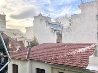 Bright, airy and bright with high ceilings and good layout, opposite Villa Kotopouli, with a detached house opposite, quiet with a facade and an interior bedroom that faces the open, ideal location for students. Renovated in 2018 without alimunim windows (single glazing) original parquet flooring and tiled kitchen and front room. Open plan to living room / both sides get direct sun at times, and the building is well maintaied for its age. There is a private garage, closed with its own entrance / exit from the street, one block away - 28 sq m sold separately or in combination.